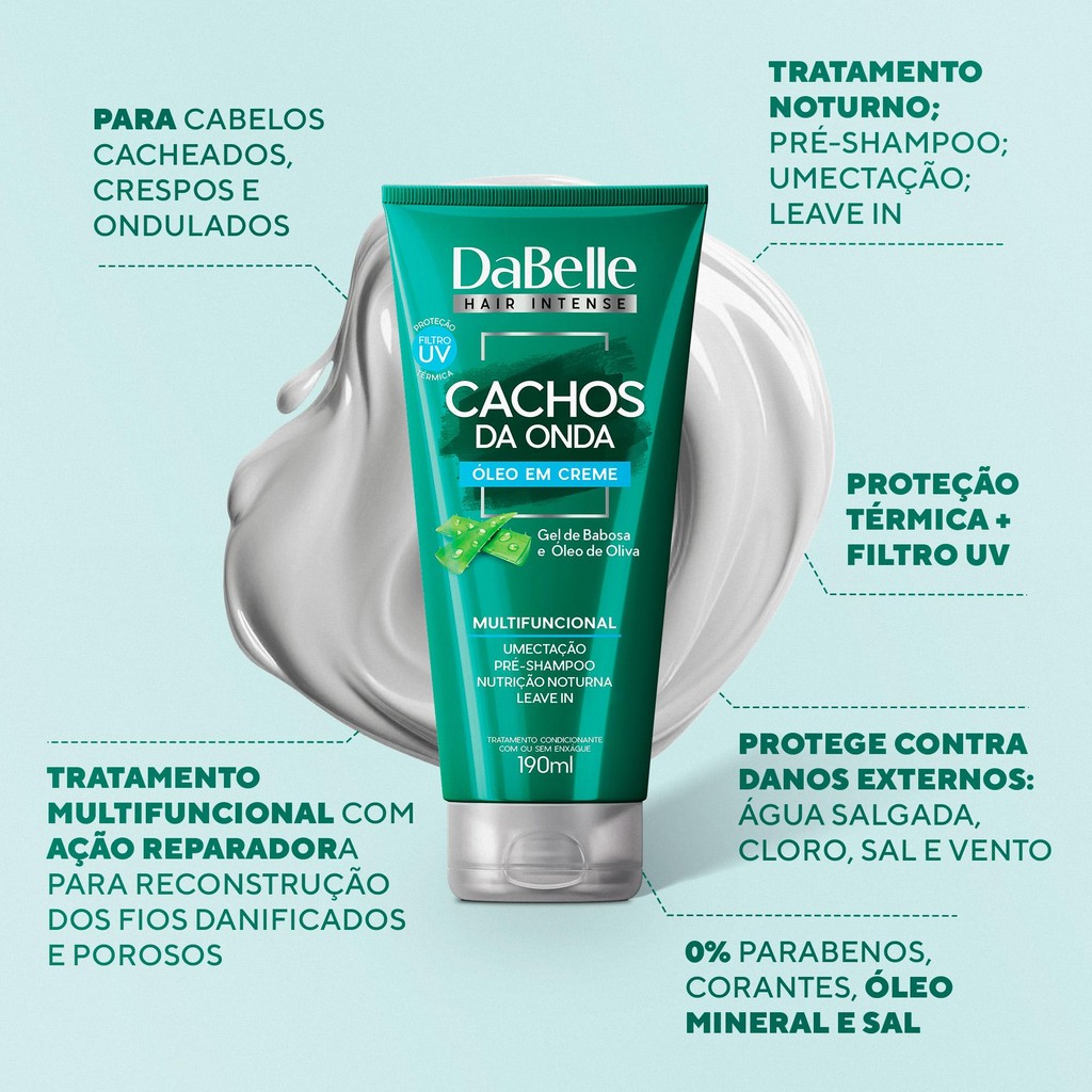 O Kit Óleo em Creme DaBelle Hair foi desenvolvido para oferecer nutrição, reparação e definição aos fios, atendendo diferentes necessidades capilares em um único conjunto. Ideal para quem busca tratamento versátil, maciez, brilho e controle do frizz no dia a dia. Com fórmulas enriquecidas com ativos nutritivos, os óleos em creme proporcionam cuidado intensivo sem pesar, deixando os cabelos mais saudáveis, alinhados e com toque sedoso. O Óleo em Creme Cachos da Onda (190ml) é ideal para cabelos cacheados e ondulados, ajudando na definição, hidratação e controle do frizz, mantendo os cachos mais soltos e definidos. O Óleo em Creme Resgata Fios (190ml) atua na recuperação dos fios danificados, promovendo nutrição profunda, fortalecimento e aparência revitalizada. O Óleo em Creme Abacate Nutritivo (190ml) oferece nutrição intensa, auxiliando na reposição de nutrientes essenciais, deixando os fios mais macios, brilhantes e saudáveis. Pode ser usado como creme de tratamento, finalizador ou potencializador da nutrição, de acordo com a necessidade dos cabelos. Conteúdo do Kit: 1 Óleo em Creme Cachos da Onda – DaBelle Hair 190ml 1 Óleo em Creme Resgata Fios – DaBelle Hair 190ml 1 Óleo em Creme Abacate Nutritivo – DaBelle Hair 190ml Ideal para quem busca um cuidado completo, prático e eficaz para diferentes tipos de cabelo