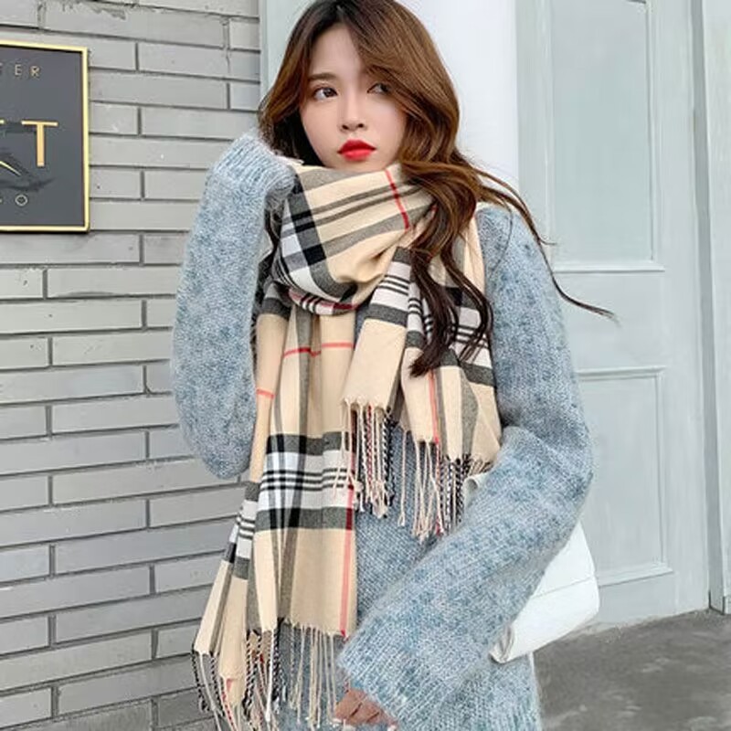 Daiana Moda Lenço Cachecol Feminino Xadrez Cashimina Unissex Outono Inverno Frio Inverno