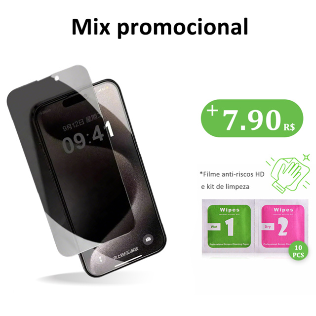 | Película de vidro 3D Privacidade Anti Spy Para IPhone Todos Modelos... | R$ 5,60 | 65% | 4.9/5 | 16 mil |