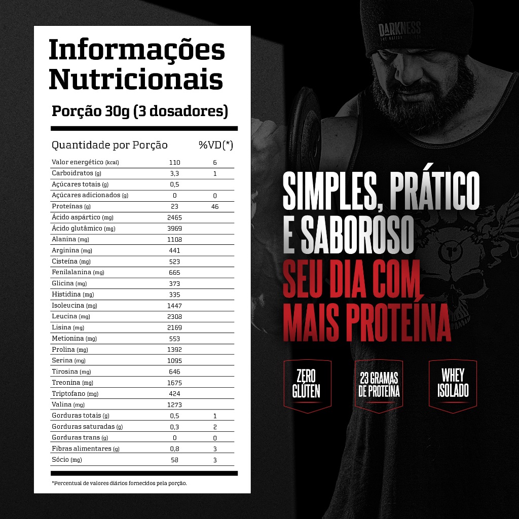 O Iso Hydro Clean da Darkness combina whey isolado e hidrolisado, promovendo digestibilidade e absorção superiores. Ideal para quem busca otimizar a recuperação muscular e impulsionar ganhos de massa. Com baixo teor de carboidratos, gorduras e sódio, este whey garante alta pureza proteica e um ambiente anabólico ideal para treinos intensos. Fácil de diluir, é perfeito para o pós-treino ou reposição proteica a qualquer momento. Disponível nos irresistíveis sabores Baunilha e Chocolate. Rico em aminoácidos essenciais e livre de glúten, o Iso Hydro Clean oferece suporte completo para força, recuperação e construção muscular. Experimente o melhor em nutrição esportiva. Na Darkness, acreditamos na superação constante. Inspiramos atletas a enfrentar desafios únicos com determinação, conectando corpo e mente em uma jornada de evolução. Cada esforço reflete nosso compromisso: oferecer produtos que impulsionam desempenho, promovem resultados e fortalecem sua capacidade de ir além.