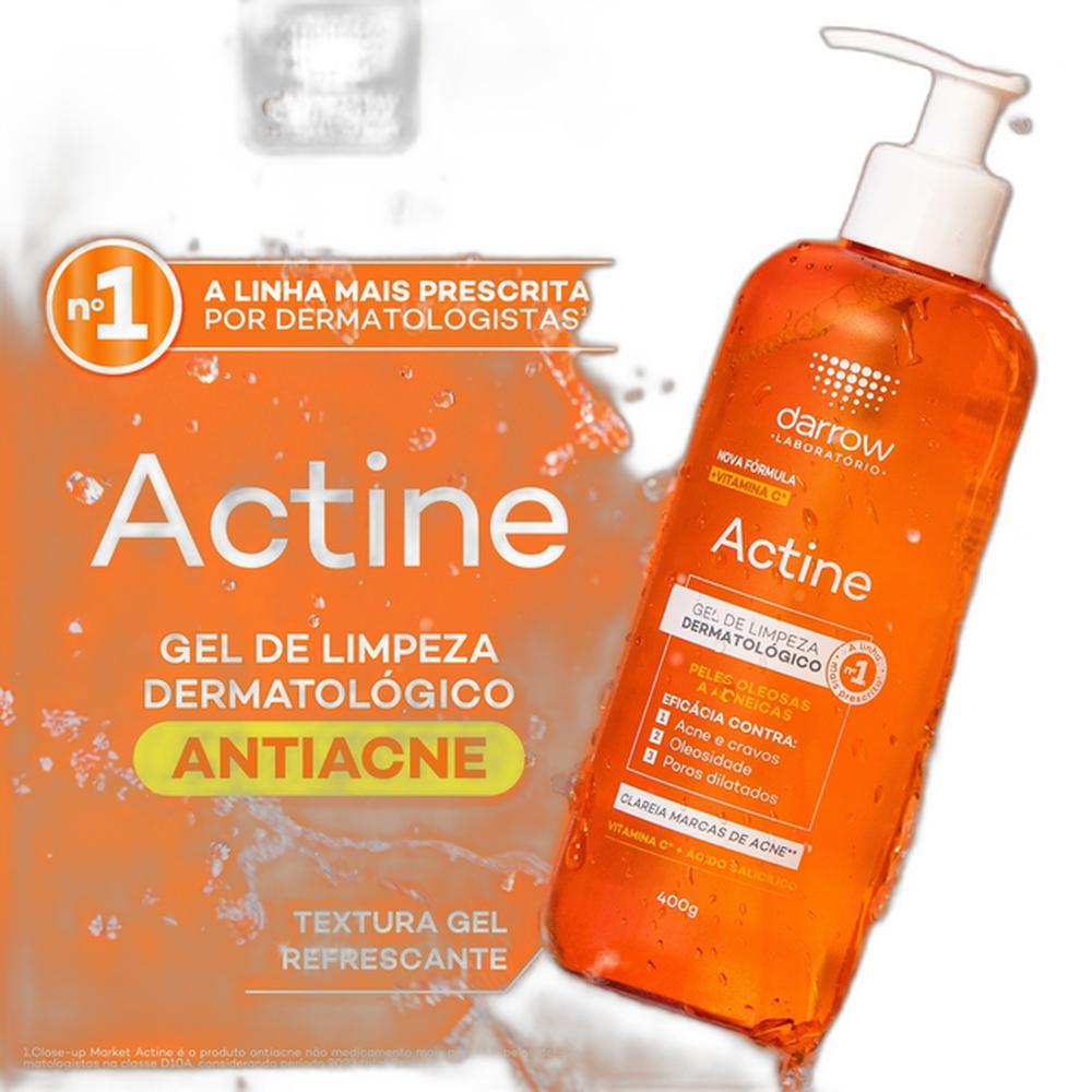 Gel de limpeza facial. Darrow Actine é o tratamento mais prescrito por dermatologistas para pele oleosa ou com acne. O Gel de Limpeza Facial Darrow Actine combate a acne e o excesso de oleosidade com sua fórmula eficaz e suave. A combinação de Ácido Salicílico, para desobstrução de poros e tratamento de cravos e espinhas, e Lactato de Mentila, para uma sensação refrescante e purificante, garante uma limpeza profunda sem agredir a pele. Com resultados clinicamente comprovados, reduz a acne em 86%, a oleosidade em 97% e atenua as marcas de acne em apenas 4 semanas, promovendo uma pele mais uniforme e saudável. Como usar: Aplique Darrow Actine Gel de Limpeza na pele umedecida e massageie suavemente até formar espuma. Em seguida, enxágue abundantemente. Utilize de 1 a 2 vezes por dia ou conforme orientação médica. **** IMPORTANTE: Não vendemos para contas CNPJ, evite que seu pedido seja cancelado! ****
