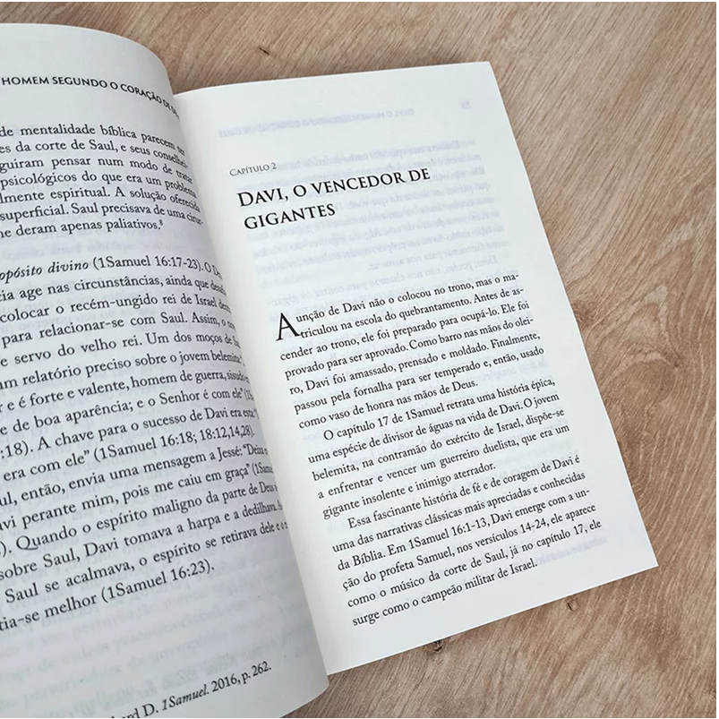Livro Davi | O homem segundo o coração de Deus Questões práticas e teóricas. O homem segundo o coração de Deus. Essa é uma descrição rara proferida pelo próprio Deus a respeito do rei Davi em Atos 13:22. Deus o descreveu dessa forma não porque Davi era perfeito, mas por ter um coração quebrantado e voltado para Ele. Davi foi pastor, músico, compositor, guerreiro, amigo leal, político experiente e adorador fervoroso. Deus o escolheu, capacitou, elevou e disciplinou. Ele triunfou sobre inimigos históricos, ampliou seu reino e sua fama transcendeu gerações. Hernandes Dias Lopes, um dos maiores expoentes das Escrituras da atualidade, brinda-nos com um texto primoroso sobre a vida dessa grande figura histórica e nos ensina que até mesmo os maiores heróis da fé podem cometer erros, mas é a maneira como respondemos a esses tropeços que define nosso caráter e como entramos para os anais da História. Hoje, sua vida inspira, seu legado abençoa, seus salmos encantam, suas lágrimas comovem e sua esperança messiânica fortalece a fé. Que a vida de Davi continue a inspirar gerações a seguir o coração de Deus e a buscar sua graça em todos os momentos. A Editora Hagnos acredita na força dos livros como agentes de mudanças socioculturais, intelectuais e espirituais e busca, com a ajuda de seus autores, disponibilizar produtos sempre alinhados com as Sagradas Escrituras e com as realidades do mundo cristão contemporâneo. Mais do que publicar livros, entregamos ao mercado obras que dão ao leitor uma verdadeira experiência e o inspiram a buscar uma verdadeira transformação na sua vida, baseada em valores éticos, morais, humanos e, acima de tudo, cristãos. Especificações do Livro Davi Título: Davi Subtítulo: O homem segundo o coração de Deus Autor(es): Hernandes Dias Lopes Ano de Edição: 2023 Capa: Brochura Acabamento: Laminação Fosca Miolo: Papel Offwhite Páginas: 368 Dimensões: Altura: 20,5 cm Largura: 13,5 cm Profundidade: 2,0 cm Peso: 0,380 kg