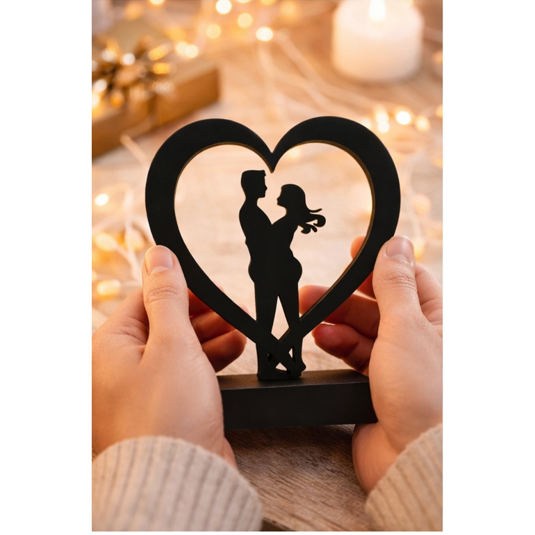 Tamanho aproximado da Decoração: 15cm x 16cm Transforme qualquer ambiente com um toque de romance e elegância ❤️ Essa escultura decorativa em formato de casal dentro de um coração é perfeita para quem busca um item moderno, delicado e cheio de significado. Ideal para presentear ou decorar espaços especiais, ela combina com diversos estilos de decoração. Fabricada em plástico resistente, possui acabamento liso e design minimalista, trazendo charme sem exageros. Fica linda em mesas, prateleiras, estantes, aparadores ou até como destaque em datas especiais. ✨ Destaques do produto: Design romântico e moderno Material plástico leve e resistente Ótima estabilidade para superfícies planas Ideal para decoração de ambientes internos Excelente opção de presente 🎁 Indicado para: Dia dos Namorados Aniversário de namoro ou casamento Presente criativo e simbólico Decoração de salas, quartos, escritórios e vitrines 🎨 Cores disponíveis: Preto Vermelho Rosa Roxo (verifique a disponibilidade da cor no anúncio)