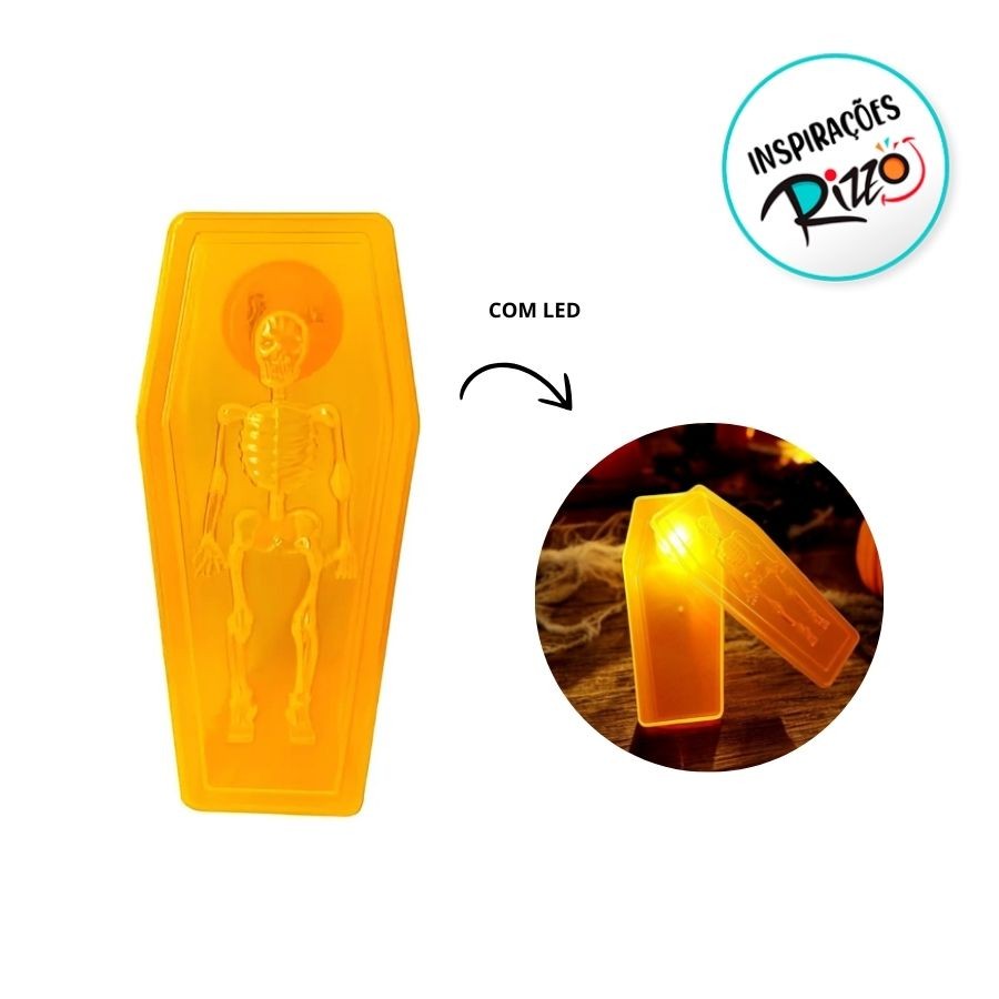 Decoração de Halloween - Caixão Com Led - Laranja - 18x8cm - 1 unidade - Rizzo