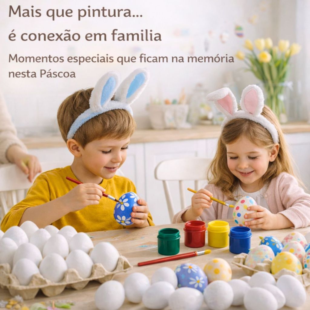 KIT OVINHOS DE ISOPOR PARA COLORIR – PÁSCOA CRIATIVA Transforme a Páscoa em um momento especial de arte, diversão e criatividade 💛 O Kit de Ovinhos de Isopor para Pintar é perfeito para crianças soltarem a imaginação, criando ovinhos coloridos e cheios de alegria! Muito utilizado em momentos de família, escolas, creches, projetos pedagógicos e lembrancinhas de Páscoa, esse kit encanta crianças e adultos O QUE TORNA ESSE KIT ESPECIAL? ✔ Atividade artística divertida ✔ Estimula a criatividade ✔ Desenvolve coordenação motora ✔ Incentiva o fazer manual (DIY) ✔ Ideal para momentos em família e em sala de aula O QUE VEM NO KIT Cada pacote contém: -5 ovinhos de isopor -4 tintas guache coloridas - 1 pincel Kits montados de forma prática e organizada. OPÇÕES DE KITS DISPONÍVEIS Você pode escolher a quantidade ideal para sua necessidade: ✔ Kit com 5 unidades ✔ Kit com 10 unidades ✔ Kit com 15 unidades ✔ Kit com 20 unidades