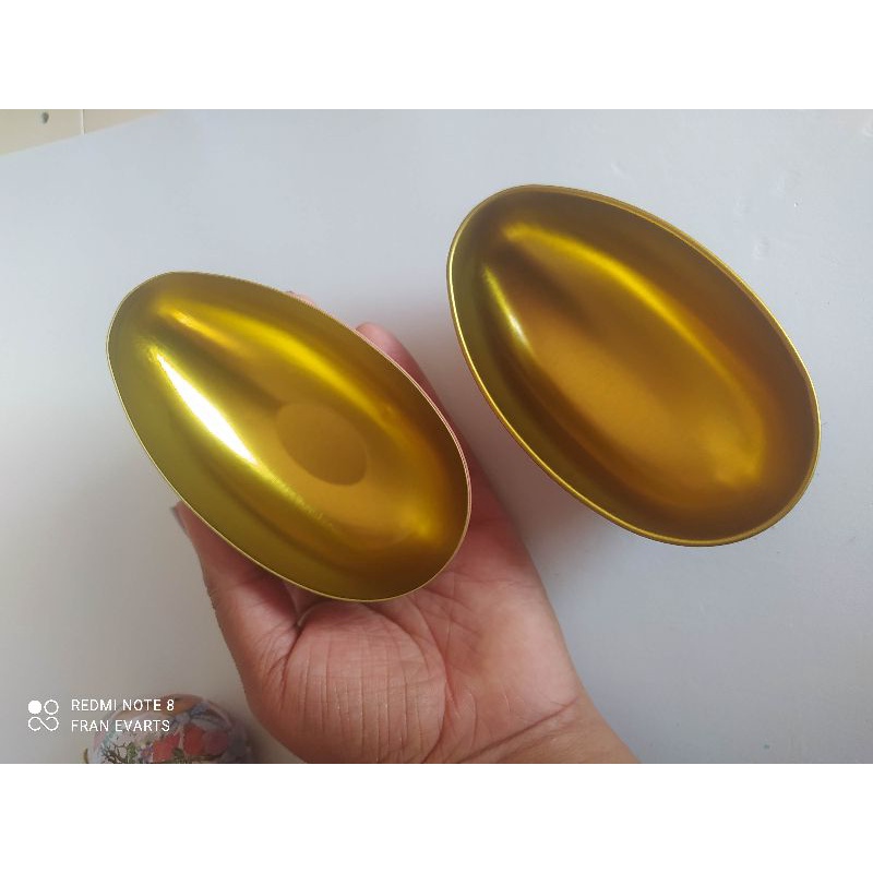 Latas em formato de Ovo Decoradas pode ser utilizada para decorar ou presentear medem media 10 cm alt- o grande 13 cm o pequeno 6 cm disponivel em 4 cores