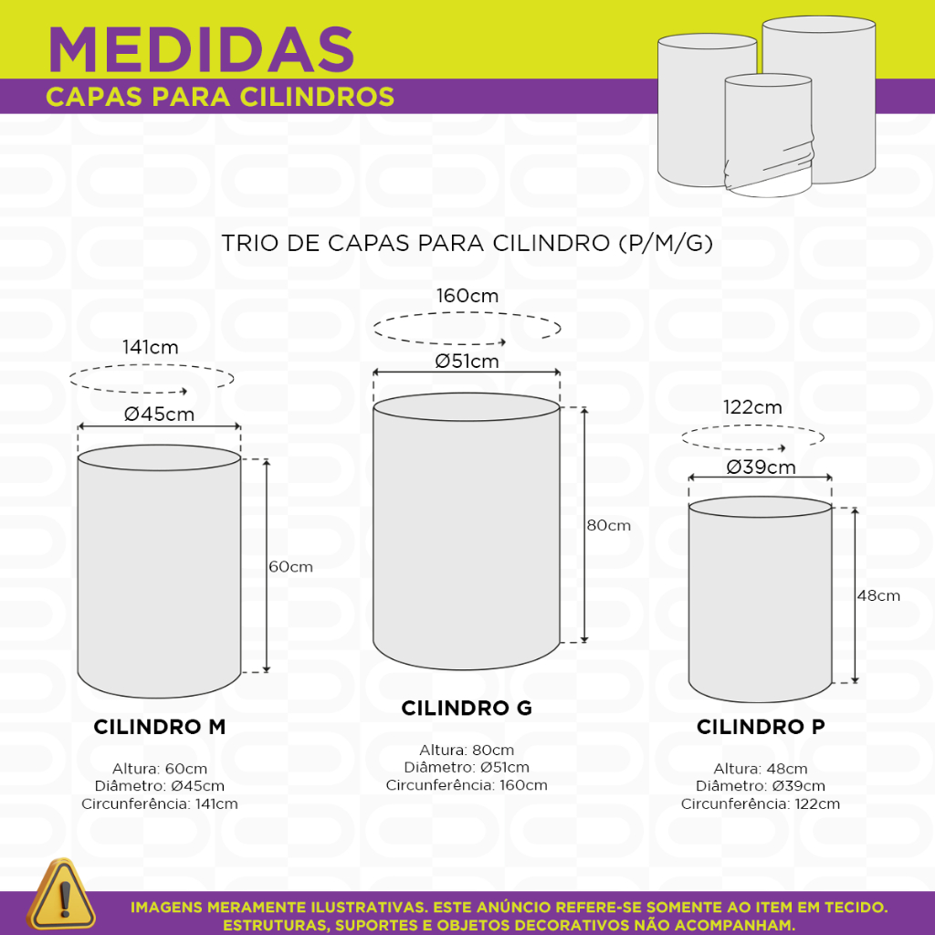 Agora sua decoração do 3 Palavrinhas vai ficar ainda mais especial! Capas e painéis sublimados em tecido com estampas encantadoras, perfeitas para celebrar com alegria e fé! Impressão de alta qualidade, cores vivas e ótimo acabamento. Práticos, fáceis de usar e pensados para transformar sua festa em um momento inesquecível! *** ATENÇÃO: NÃO FAZEMOS AJUSTES DE MEDIDA OU ARTE NAS CAPAS E PAINÉIS DESTE ANÚNCIO. VERIFIQUE AS MEDIDAS ANTES DE FINALIZAR A COMPRA *** >>>ATENÇÃO<<< NÃO ACOMPANHA ESTRUTURA/SUPORTE, VENDEMOS SOMENTE AS CAPAS/PAINÉIS EM TECIDO!!! ---------------------------------------------------------------------------------- > MEDIDA DO PAINEL REDONDO EM TECIDO: - Tamanho Único - Utilização em estruturas circulares entre 1,20 até 1,50 de diâmetro. + Elástico cuidadosamente costurado redor do painel redondo. ---------------------------------------------------------------------------------- > MEDIDAS DA CAPA DE TRIO PARA CILINDRO: TAMANHO P: (A) Altura: 48cm // (D) Diâmetro: 39cm // (C) Circunferência: 122cm TAMANHO M: (A) Altura: 60cm // (D) Diâmetro: 45cm // (C) Circunferência: 141cm TAMANHO G: (A) Altura: 80cm // (D) Diâmetro: 51cm // (C) Circunferência: 160cm + Elástico cuidadosamente costurado na base dos cilindros. ---------------------------------------------------------------------------------- > MEDIDA DA CAPA DE MESA MONTADA: - Tamanho Único - 0,70x1,40 com corte laser, evitando que seu produto desfie! - DICA DE USO: • Decorações de mesa veste fácil • Utilizar duas mesas de plástico tamanho tradicional de 70cmx70cm lado a lado, proporcionando uma cobertura elegante e ajustada em um instante. ---------------------------------------------------------------------------------- > MEDIDA DO PAINEL ROMANO: - Tamanho Único - 1,00x2,00 com acabamento em elástico ao redor de todo painel. + Acabamento em elástico para fixação do painel romano. ---------------------------------------------------------------------------------- > MEDIDA DO PAINEL RETANGULAR 1,50x2,30: - Tamanho Único - 1,50m de largura por 2,20m de altura + Acabamento passa varão para fixação do painel vertical retangular. ---------------------------------------------------------------------------------- > MEDIDA DA CAPA DE PORTA: - Tamanho Único - 0,85x2,10 com corte laser, evitando que seu produto desfie! - DICA DE USO: • Recomendamos o uso em portas na medida de 0,80cm de largura por 2,10cm de altura. + Acabamento à laser nas laterais. + Acabamento em elástico facilitando o encaixe da capa de porta ---------------------------------------------------------------------------------- > MEDIDA DO PAINEL HORIZONTAL: (Confira na opção tamanho qual medida é o produto) - 1,50m de largura x 1,00m altura - 2,00m de largura x 1,50m altura ---------------------------------------------------------------------------------- Agora sua festa está completa!!! Graças as Capas e Painéis de Festa em Tecido da CRIATEMA!!! DETALHES DAS CAPAS E PAINÉIS EM TECIDO: + Tecido Malha New (Que estica e não amassa). + Tecido Leve com ótimo caimento + Gramatura: 140g/m de excelente qualidade. + Composição do Tecido: 95% Poliéster e 5% de Elastano. PRODUÇÃO E ENVIO: - TODOS OS PEDIDOS ACOMPANHAM NOTA FISCAL. - O envio é feito em embalagem individual e com todo carinho. - Os prazos para entrega variam conforme o seu CEP, não nos responsabilizamos pelos prazos dados pela Plataforma. *** Tem alguma dúvida antes de finalizar sua compra? Envie uma mensagem para nós que ajudaremos você! Temos vários anos de experiência no mercado em itens sublimados. ***