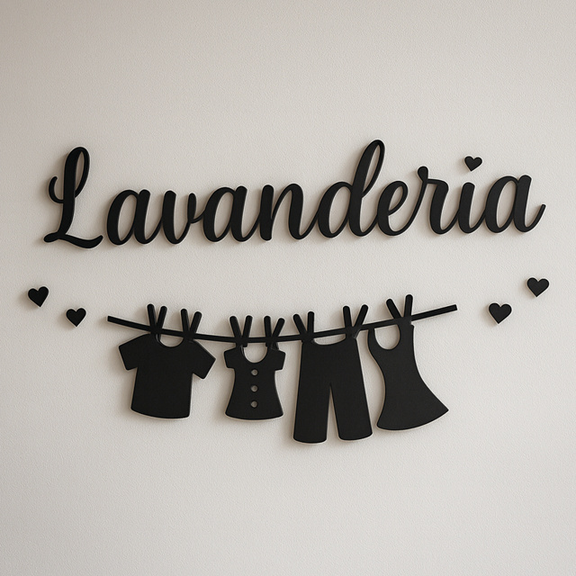 Decoração Lavanderia Mdf Natural Aplique de Parede 50x25cm Área de Serviço Casa