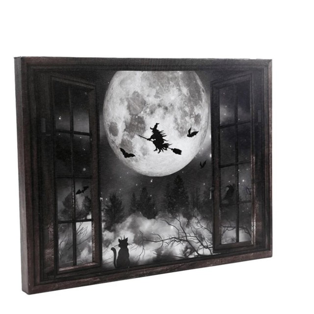 Decoração Quadro Iluminado Cemitério Bruxa Halloween