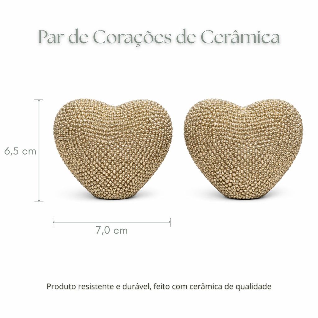 Kit Enfeite com 02 Corações de Cerâmica para Decoração da sua sala, quarto ou uma diversidade de ambientes. O Kit contém 2 Corações Decorativos de Cerâmica Grandes Não se preocupe! Para sua melhor experiência de compra, embalamos cada peça individualmente em embalagem segura para que tudo chegue em perfeito estado até você! Características de Cada Item: Coração Decorativo Grande ( 02 unidades ) - Altura: 6 cm - Largura: 8 cm - Material: Cerâmica