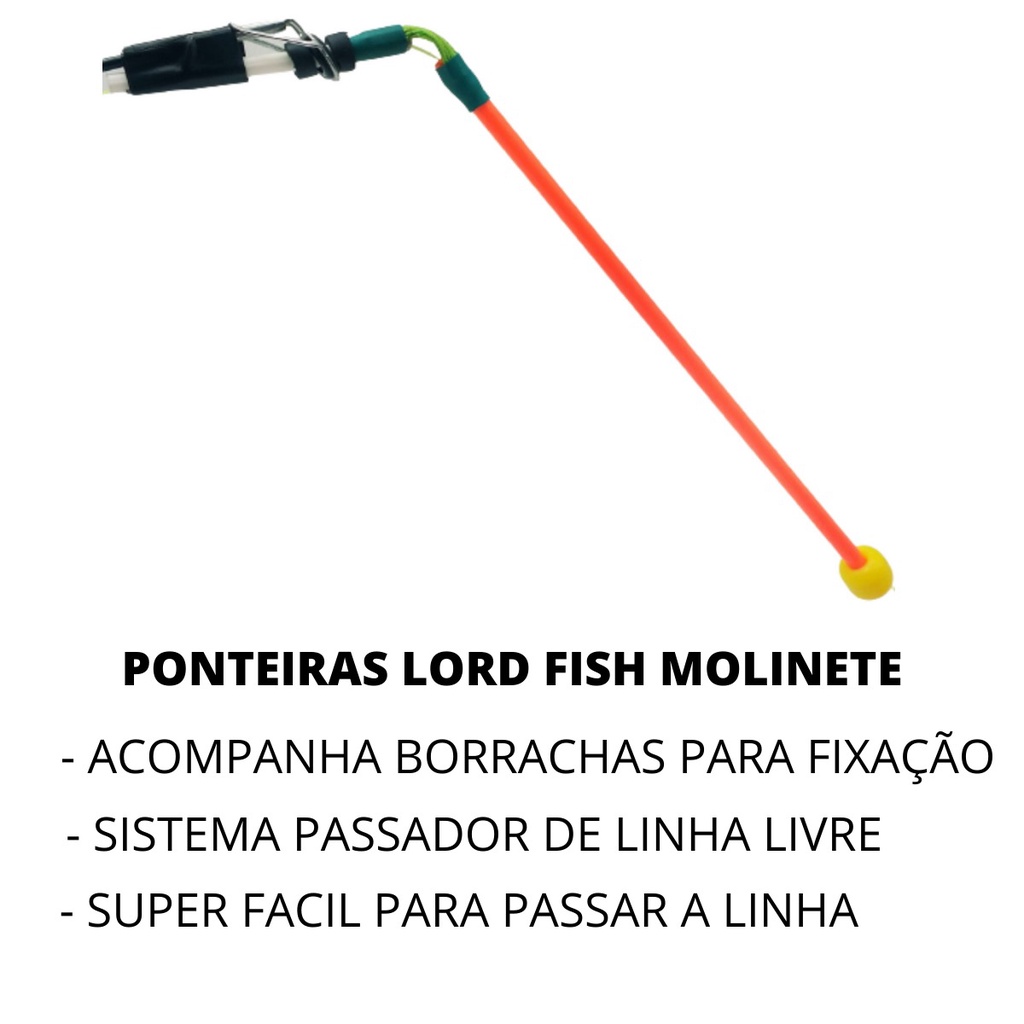 PONTEIRA INTELIGENTE PARA MOLINETE (DEDO DURO) REFORÇADA LORD FISH! As ponteiras para molinete LORD FISH possuem uma sensibilidade incrível e uma alta resistência as ponteiras são facilmente instaladas em qualquer vara para molinete. Ideal para pesca de peixes manhosos, um acessório que ira te trazer fantásticas fisgadas! -ÓTIMO ACABAMENTO - ALTA SENSIBILIDADE - ALTA RESISTÊNCIA - CORES FLUORESCENTES - CORES COM ALTA VISUALIZAÇÃO CORES DISPONÍVEIS: COR A: AMARELO FLUOR COR B: ROSA FLUOR COR C: LARANJA FLUOR ESPECIFICAÇÕES: TAMANHO TOTAL: 21 cm ESPESSURA: 5 mm -PRODUTO NOVO - PRONTA ENTREGA APÓS A COMPRA NOS ENVIAR AS CORES DESEJADAS (CASO NÃO SEJA ENVIADO SERA ENVIADO CONFORME DISPONIBILIDADE DO NOSSO ESTOQUE)