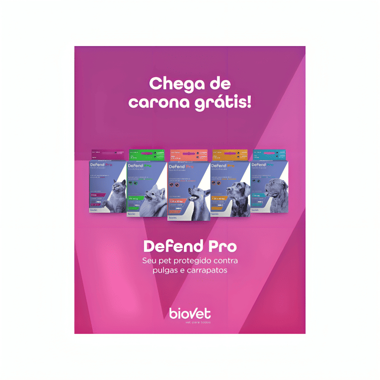 🐾 Proteção com carinho para o seu bichano O Defend Pro Gatos é um antipulgas tópico desenvolvido pela Biovet, especialmente para proteger o seu gatinho com conforto e segurança. Aplique, proteja e deixe seu felino livre das incômodas pulgas que causam coceiras e alergias. 🔍 Indicação Indicado para gatos a partir de 8 semanas de idade, de qualquer porte (até 10 kg). Ideal para gatos que vivem dentro de casa ou que têm acesso ao quintal. Uso tópico – pipeta individual de 0,5 ml, prática e fácil de aplicar. ✅ Benefícios do Defend Pro Gatos 🐈⬛ Ação eficaz contra pulgas adultas – elimina rapidamente e ajuda a prevenir novas infestações. 🛡️ Fórmula com Fipronil, ativo reconhecido pela eficácia antipulgas em gatos. 🌿 Segurança e conforto – especialmente formulado para a pele sensível dos felinos. 💧 Aplicação simples e sem estresse, na nuca do gato, em local que ele não alcança. 🏡 Ajuda a proteger o ambiente da casa, reduzindo a proliferação de pulgas. Amor de tutor é cuidado diário: manter o bichano protegido é uma forma de demonstrar carinho. 💕 🧴 Modo de uso Segure a pipeta na posição vertical e quebre a ponta. Afaste os pelos na base da nuca até visualizar a pele. Aplique todo o conteúdo (0,5 ml) diretamente sobre a pele seca. Evite banhos por 24 h após a aplicação. Lave as mãos após o uso e mantenha o gato afastado de crianças até o produto secar. 💡 Reaplicar conforme recomendação do médico-veterinário ou quando houver nova infestação de pulgas. 💬 Perguntas frequentes 📅 Posso usar em filhotes? Sim! É indicado para gatos a partir de 8 semanas. ⏳ Quanto tempo dura o efeito? O produto oferece ação prolongada, podendo variar conforme o grau de infestação. 🐈 Serve para gatos que não saem de casa? Sim. Mesmo gatos de apartamento podem pegar pulgas vindas de roupas, sapatos ou outros animais. 🚫 Posso usar em gatos doentes ou gestantes? Evite o uso sem orientação veterinária. Sempre consulte um profissional antes da aplicação. 🏪 Por que comprar na FácilPet? ✔️ Produtos originais e com procedência garantida. 🚚 Envio rápido e seguro para todo o Brasil. 💬 Atendimento atencioso e suporte pós-venda. 💖 Aqui o amor pelos pets vem em primeiro lugar!