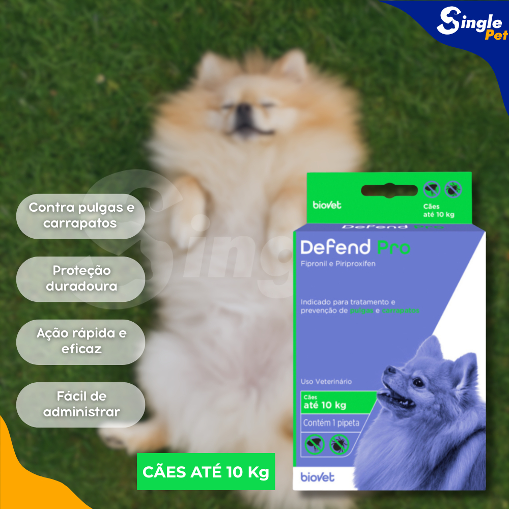 🐾 Defend Pro – Tratamento Antipulgas e Carrapatos para Cães de até 10kg Mantenha seu melhor amigo sempre protegido com o Defend Pro, um tratamento desenvolvido especialmente para cães de pequeno porte, com até 10kg. Sua fórmula foi criada para agir de forma eficaz e duradoura, eliminando e prevenindo a infestação de pulgas e carrapatos que podem prejudicar a saúde do seu pet. ✨ Vantagens do Defend Pro: ✅ Ação rápida e eficaz – combate pulgas e carrapatos desde a primeira aplicação. ✅ Proteção duradoura – auxilia na prevenção de novas infestações por semanas. ✅ Segurança para cães pequenos – desenvolvido na dose ideal para pets de até 10kg. ✅ Praticidade – fácil de administrar, sem complicações no dia a dia. ✅ Bem-estar garantido – protege contra doenças transmitidas por parasitas, como a erliquiose e babesiose. 🐕 Indicação: O Defend Pro Antipulgas e Carrapatos é indicado para cães de pequeno porte (até 10kg), de todas as raças. Pode ser utilizado em cães adultos e filhotes a partir da idade recomendada pelo fabricante (verifique sempre a bula antes do uso). 📦 Informações do Produto: Marca: Defend Pro Indicação: Cães até 10kg Uso: Tratamento contra pulgas e carrapatos Apresentação: conforme embalagem do fabricante 💡 Dica da Single Pet: A proteção contra pulgas e carrapatos é essencial não só para o conforto do pet, mas também para prevenir doenças graves que podem comprometer a saúde. Use regularmente o Defend Pro e garanta a segurança do seu cãozinho!