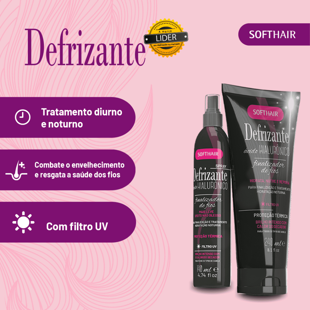 | Defrizante Ácido Hialurônico Soft Hair 240ml este produto | R$ 26,59 | — | 4.9/5 | — |