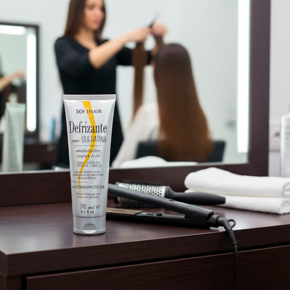 Defrizante com Queratina Soft Hair 240ml – Modelador Super Liso com Termoprotetor Proteção Térmica e Reposição de Massa para um Liso Impecável O Defrizante com Queratina Soft Hair é o finalizador esse