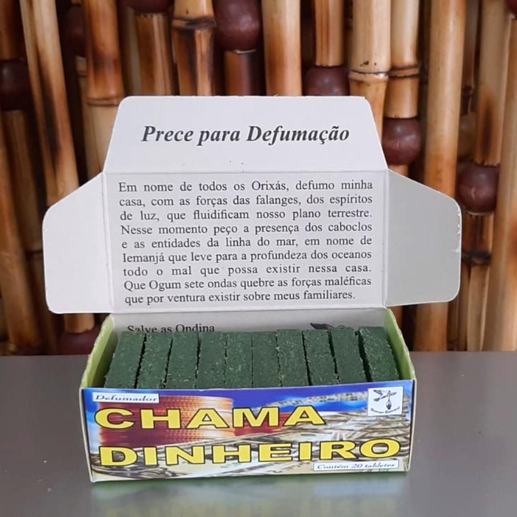 Defumador Natureza Espiritual Tablete Chama Dinheiro A defumação purifica o ambiente e limpa o local de energias negativas. Auxilia na abertura de bons caminhos, traz paz espiritual, maior concentração e foco em seus objetivos. E também atrai positividade para as questões domésticas, de negócios e financeiras. - Cada caixa contém 20 tabletes ( incenso pirâmide) com aproximadamente 60g cada caixa - Cada tablete contem: essência, plantas aromáticas, pó de serra e resina indianas. Somos uma empresa atuante no mercado há mais de 25 anos, buscando sempre a satisfação de nossos clientes. Nossa linha de produtos esotéricos e religiosos encanta a todos que compram! Garantia de Rapidez e Segurança na entrega!