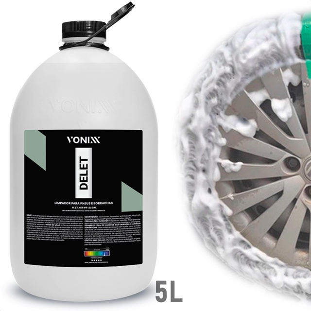 | Delet Vonixx 5 litros Embalagem Economica Limpador Para Pneus Borra... este produto | R$ 141,53 | 3% | 5.0/5 | — |