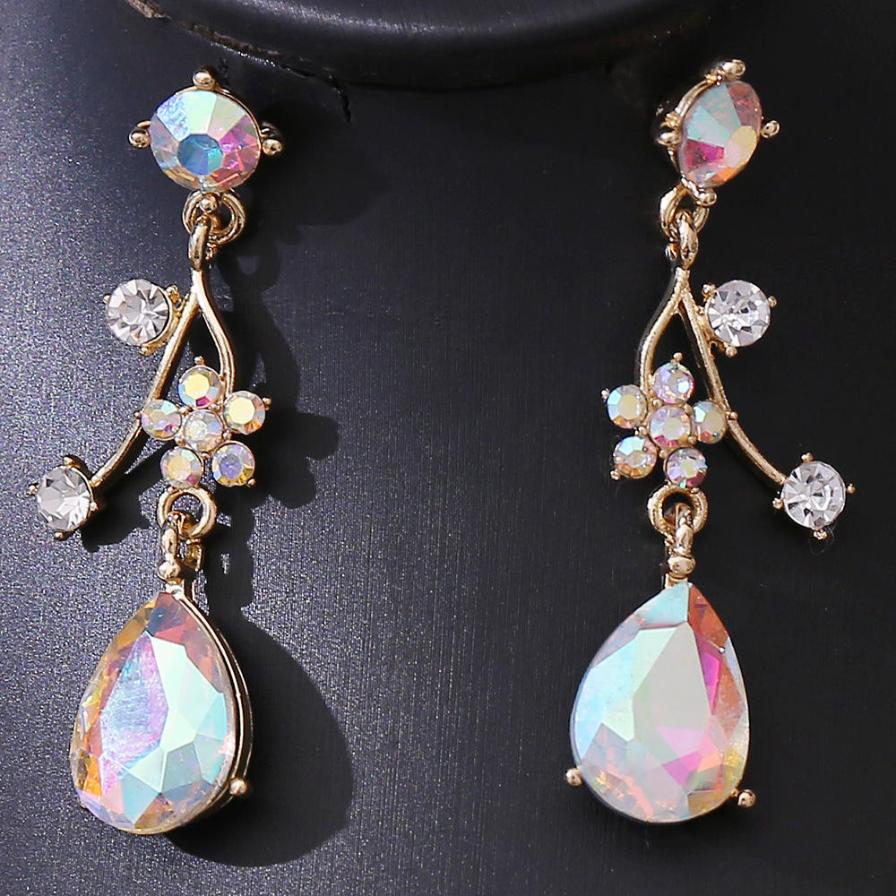 Delicado Conjunto De Brincos Glamourosos Gargantilha Colar Strass Elegante Jóias De Noiva Para Dama De Honra Ocasião For