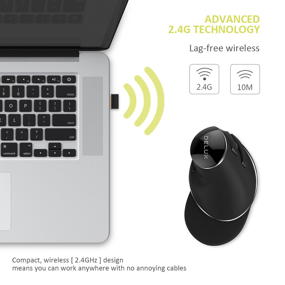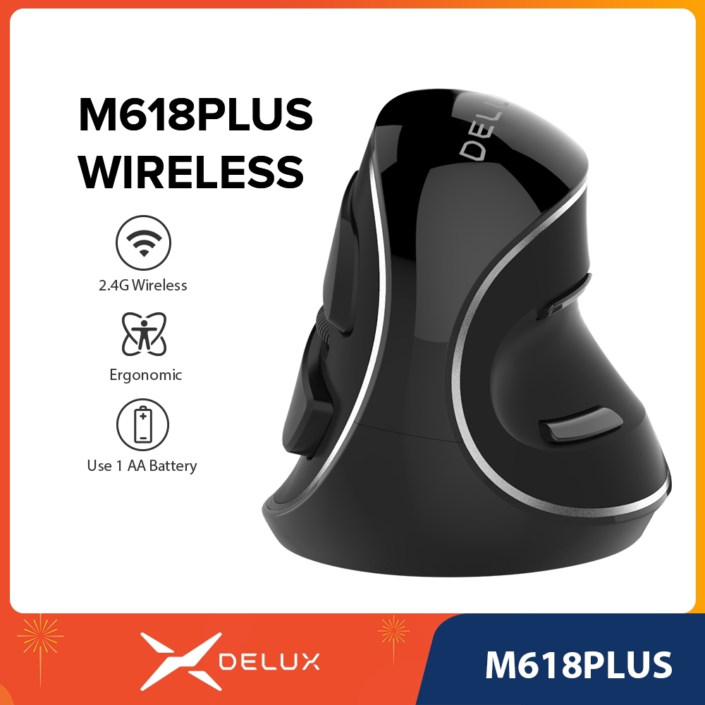 Delux M618Plus Wireless Rato Sem Fio Vertical Ergonômico 1600DPI 6 Botão De Função Ratos Ópticos Com Descanso Para Palma Removível PC