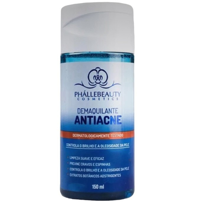 Demaquilates PhálleBeauty temos 5 Opçoes de escolhas *Antioleosidade* Controla e Equilibra a Oleosidade da Pele Remoção Completa De Maquiagens Limpeza Delicada e Efetiva Possui Acido Salicílico Flagrância De Café Verde *Antiacne* Controla o Brilho Limpeza Suave e Eficaz Prevenir Cravos e Espinhas . Extratos Botânicos Adstringentes *Micelar Cleabsing Milk* Limpa sem esforço Contem Acido Hialuronico e Aloe Vera Acalmar a Pele Hidrata a Pele *Rosa Mosqueta* Óleo Nutritivo de Limpeza Facial Rico em Vitamina E Não deixa a pele Oleosa Flagrância De Rosa Mosqueta *BIFASICO* Remove Maquiagem De Forma Rapida Acido Hialuronico e Thehalose Extrato de Aloe Vera Agite Bem antes de usar O mais sofisticado sistema de limpeza facial para a pele . O Demaquilante da PhalleBeauty tem uma composição específica para eliminar a maquiagem sem agredir a pele : • Livre de óleos e gorduras • Possui agentes de limpeza suave • Não agride a pele • Contém extratos vegetais equilibrantes • Formulado com ácido Salicílico e Niacinamida • Dermatologicamente Testado • Nao testado em animais - Funções do demaquilante: * Controla o brilho e a oleosidade da pele * Limpeza suave e eficaz * Extratos botânicos adstringentes - Modo de usar: Umedeça um pedaço de algodão com o Demaquilante da PhalleBeauty e aplique no rosto massageando delicadamente para completa remoção da maquiagem. Repita o procedimento até que a pele fique completamente limpa. Não precisa enxaguar.