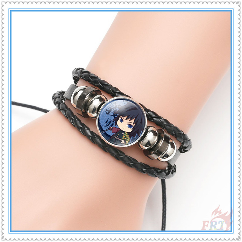 ☀ Demon Slayer-Pulseiras De Couro Com Personagens De Anime 1Pc Tempo Gem Cabochão Ajustável Mão Tricô Pulseira Vintage Presentes (9 Estilos)