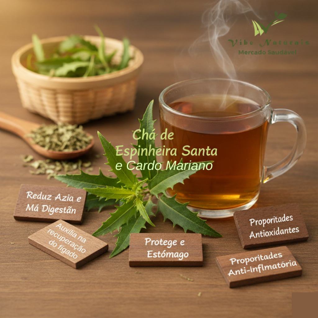 Cardo Mariano + Espinheira Santa + Dente de Leão O cardo mariano, a espinheira santa e o dente-de-leão oferecem benefícios principalmente para a saúde digestiva e hepática, podendo ser usados em conjunto para potencializar seus efeitos na desintoxicação e tratamento de problemas gastrointestinais. Para prepará-lo, ferva 300 ml de água, adicione uma colher de sopa de cada chá, deixe em infusão por 5 a 10 minutos, coe e consuma morno, até duas vezes ao dia.