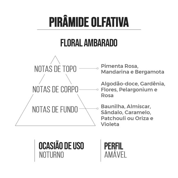 Uma fragrância floral ambarada intensa em apenas uma borrifada. Sinta-se sedutora e confiante em qualquer ocasião com este perfume irresistível. Com uma combinação envolvente de notas florais e ambaradas, esta fragrância é uma verdadeira arma de sedução. Apenas uma borrifada é o suficiente para deixar uma impressão marcante e duradoura, permitindo que você se sinta confiante e poderosa em qualquer situação. Deixe-se envolver pelo aroma sedutor desta fragrância e deixe sua personalidade brilhar. Seja você mesma e arrase em todas as ocasiões, sabendo que está radiante e irresistível com este perfume que exala feminilidade e sofisticação. Esteja pronta para conquistar corações e deixar uma marca inesquecível com esta fragrância floral ambarada intensa. ✅ Referência olfativa: 212 Sexy. ✅ Família olfativa: Floral Ambarado. Indicações: ✔️ Para usar: Noite. ✔️ Estação: Inverno. ✔️ Ocasião: Romance. ✔️ Perfil: Sedutora. ✔️ Perfume de bolso (15ml) - Perfeito para levar com você em qualquer momento.