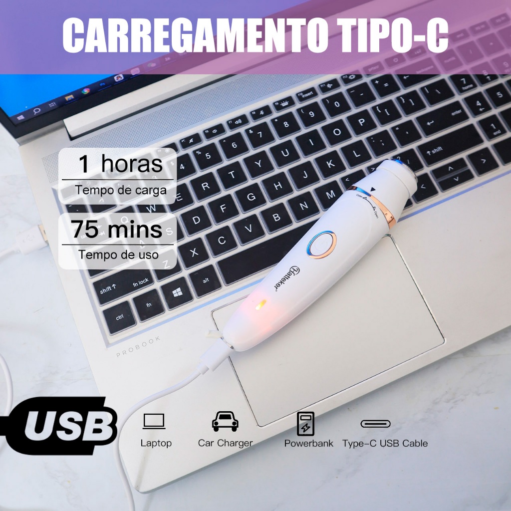 Depilador 7 em 1 Recarregável à Prova d’Água IPX5 com Acessórios para Rosto e Corpo USB,BivoltHT-590