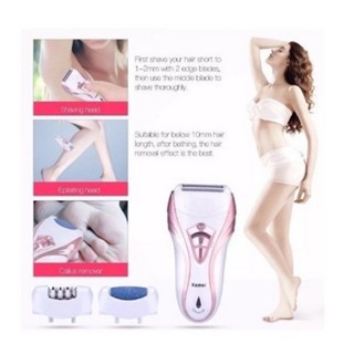 Depilador Elétrico Kemei KM-3010 Recarregável 3 em 1 Bivolt Com Lixador de pés e Aparador de pelos