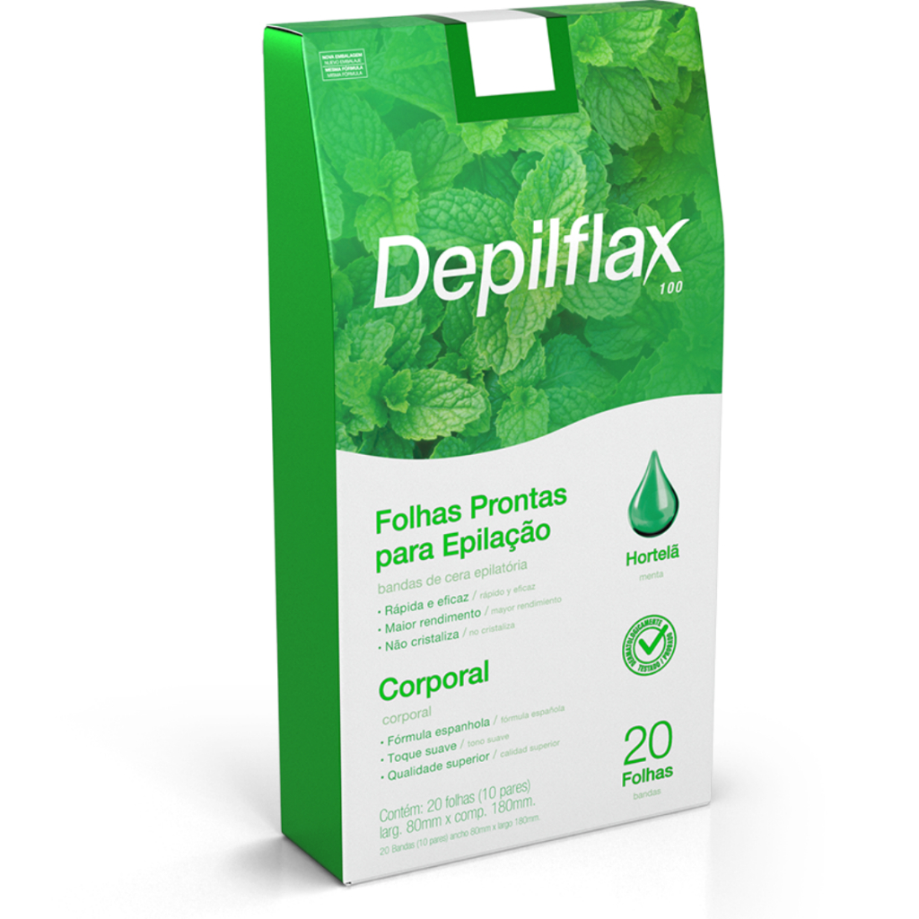 Depilflax 20 Folhas Depilação Corporal Morango Natural Hortelã Fórmula Espanhola