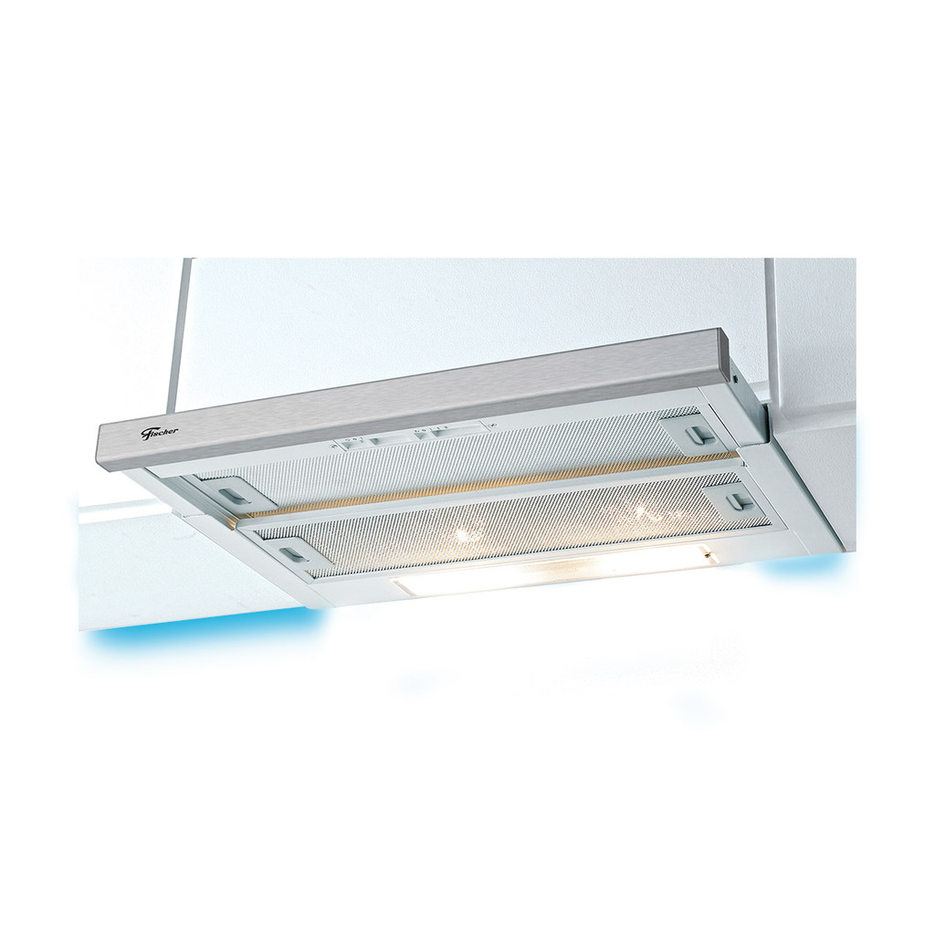 Depurador Fischer Slim de Embutir 60 cm O Depurador de Embutir Fischer Slim pode ser usado tanto como exaustor quanto como depurador. Funciona em 3 velocidades e tem frontal em aço inox escovado e revestimento externo pintado de branco. Diferenciais Exaustor ou Depurador Funciona como Exaustor, com circulação de ar para fora do ambiente. Ou Depurador, onde capta o ar quente com gordura e devolve filtrado ao ambiente. Frontal em inox O produto é produzido com frontal em aço inox escovado. Velocidades O depurador funciona em 3 velocidades de potência. Filtros e Lâmpadas O produto acompanha filtro em alumínio , lavável manualmente ou em lavadora de louças. Além de filtro em carvão ativado e lâmpadas incandescentes. Retrátil O depurador é retrátil, economiza espaço na cozinha quando não utilizado. Detalhes e Especificações Técnicas - Revestimento externo pintado em branco- Filtro em alumínio lavável manualmente ou em lavadora de louças- Funciona como exaustor ou depurador- Acompanha filtro de carvão ativado- Frontal em aço inox escovado- 3 velocidades- Lâmpada incandescente Modelo: 5760-10334 (127V) 5760-10336 (220V) Tensão: 127V ou 220V (Não é bivolt) Potencia: 150W (127V) - 140W (220V) Consumo: 0,15kWh (127) - 0,14kWh (220V) Corrente: 1,18A (127V) - 0,66A (220V) Motor: 70W (127V) - 65W (220V) Vazão (saída livre): 400m3/h Pressão: 185 Pa (127V) - 185 Pa (220V) Nível de ruído: 66dBa Controle: Eletromecânico Lâmpada: 80W (2 x 40W) Incandescente Cor/Acabamento: Branco com frontal inox Dimensões externas do produto (AxLxP): 192 x 600 x280 mm (450 gaveta retrátil) Dimensões externas da embalagem (AxLxP): 355 x 650 x 240 mm Peso líquido: 7,35kg Peso bruto: 8,15kg Código EAN (127V): 7896513309111 Código EAN (220V): 7896513309128