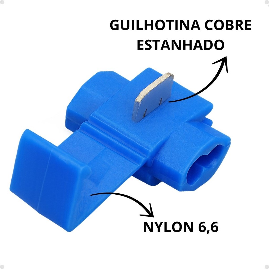 O Conector de Derivação Azul para Emenda Rápida é ideal para instalações elétricas residenciais automotivas e industriais. Permite realizar conexões seguras e práticas em fios e cabos com seção de 0,75mm² A 2,5 mm² garantindo excelente contato elétrico e redução de tempo na montagem Instalação rápida e prática basta inserir os condutores e travar o conector sem necessidade de fita isolante ou solda Compatível com múltiplos cabos indicado para emendas derivações e conexões em chicotes elétricos Material de qualidade corpo em NYLON 6,6 isolante resistente e contatos internos em cobre estanhado Cor azul facilita a padronização visual e a identificação da bitola do fio Segurança proporciona fixação firme e evita mau contato Este produto é fornecido em kits de acordo com a necessidade do cliente Ficha Técnica Produto Conector de Derivação Emenda Rápida Cor Azul Bitola de fios compatível 0,75mm² A 2,5 mm² Tipo de aplicação Emendas e derivações de cabos elétricos Material do corpo Plástico isolante de alta resistência Material interno Cobre estanhado Uso Instalações elétricas residenciais industriais e automotivas FAQ Perguntas Frequentes 1 Qual a bitola de fio suportada pelo conector ? Compatível com fios e cabos de 0,75mm² A 2,5 mm². 2 Precisa de ferramenta especial para instalação? Não Basta inserir os cabos e fechar o conector sem necessidade de solda. 3 Pode ser usado em chicotes automotivos? Sim é ideal para conexões rápidas em veículos e reparos elétricos. 4 A cor azul tem algum significado? Sim Ela facilita a padronização visual e a identificação do conector. 5 O produto é vendido em qual formato? A venda é feita em kits conforme a opção selecionada no anúncio.