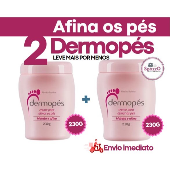 KIT DERMOPÉS - CREME TRATAMENTO HIDRATA E RESTAURA e CREME TRATAMENTO HIDRATA E AFINA Creme para Tratamento Cosmético dos Pés- Abelha Rainha ######### ATENÇÃO ESCOLHA NAS VARIAÇÕES ######### ######### ATENÇÃO ESCOLHA NAS VARIAÇÕES ######### TODOS OS PRODUTOS ENVIO IMEDIATO 1 -CREME TRATAMENTO HIDRATA E RESTAURA - AZUL O Creme para Tratamento Cosmético dos Pés Dermopés tem ação cosmética preventiva ao ressecamento, formação de calosidades e asperezas na pele dos pés. Principais ativos: ALFA HIDROXIÁCIDOS: Promove a renovação celular, hidrata e retém água na pele. URÉIA: Hidrata e aumenta a elasticidade da pele evitando o ressecamento. MODO DE USAR: Aplicar na pele dos pés após o banho e massagear até completa absorção do produto. 2 -CREME PARA AFINAR OS PÉS HIDRATA E AFINA - ROSA O Creme para Afinar os Pés Dermopés hidrata e suaviza a camada mais áspera dos pés, tem rápida absorção e promove maciez. Também remove as células mortas, restaura e afina os pés, além de atuar na recuperação e regeneração de danos provocados pelo ressecamento, rachaduras e calcanhares. Principais ativos: ALFA HIDROXIÁCIDOS: Promove a renovação celular, hidrata e retém água na pele. URÉIA: Hidrata e aumenta a elasticidade da pele evitando o ressecamento. MODO DE USAR: Aplicar somente nos pés limpos e secos diariamente, massageando até completa absorção do produto. Temos o Kit para envio imediato. Qualquer dúvida pode nos chamar no CHAT