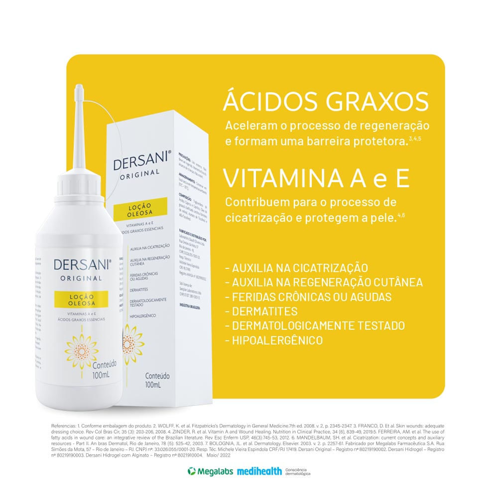DERSANI LOÇÃO OLEOSA DERSANI é indicado para a prevenção e tratamento das escaras de graus I, II e III. Tratamento de feridas crônicas ou agudas na ausência de processos infecciosos e também no tratam