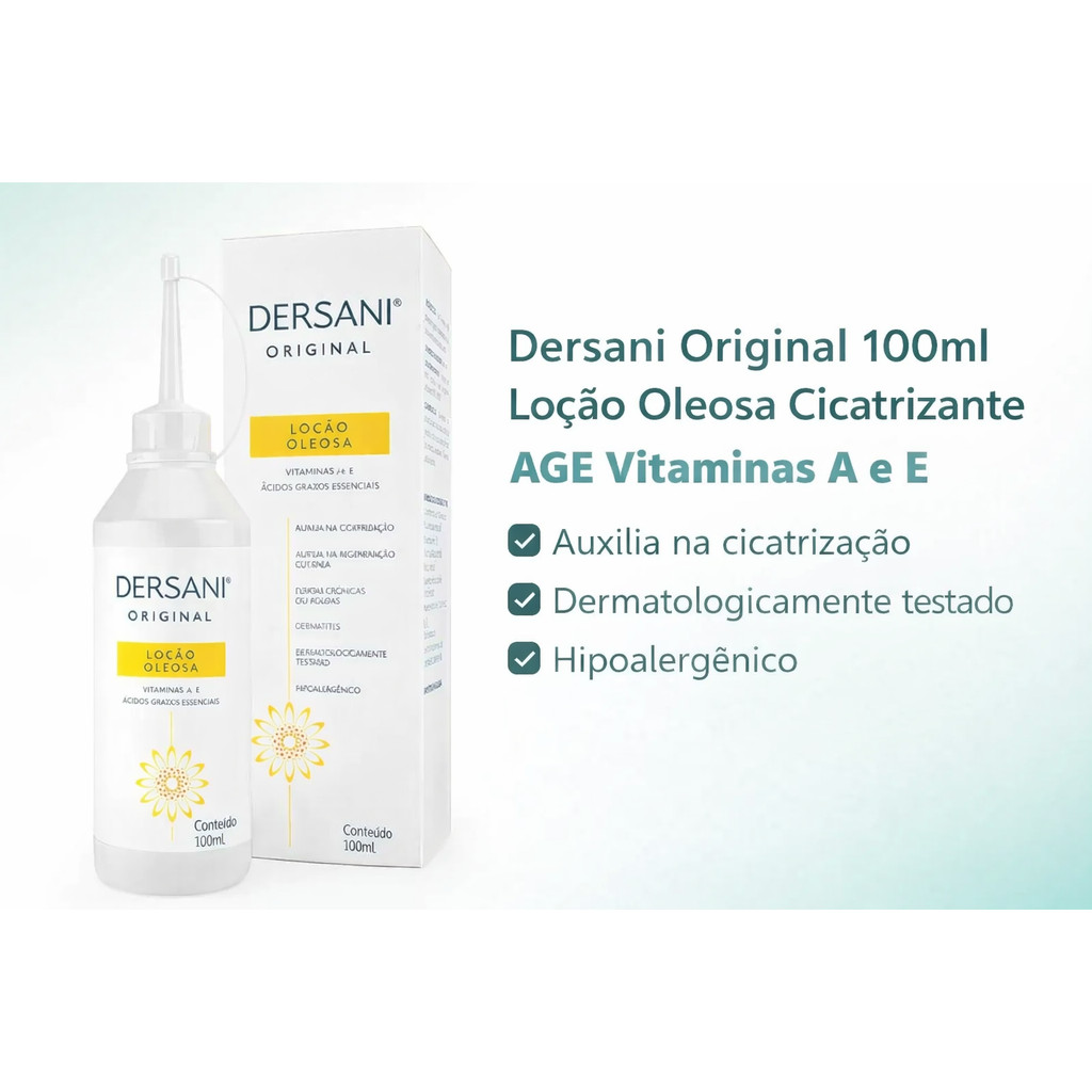 | Dersani Original 100ml Loção Oleosa Cicatrizante AGE Vitaminas A e E este produto | R$ 44,89 | — | 5.0/5 | 5 |
