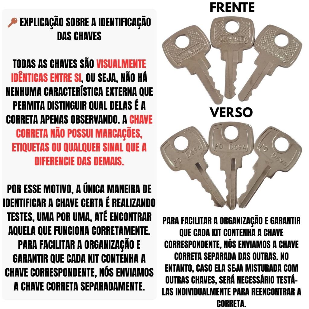 ** PRINCIPAIS APLICAÇÕES: 1. Sorteios: - Promoção "Compre e Participe": Ofereça aos clientes uma chave por cada compra ou valor mínimo gasto, com a chave servindo de ticket para o sorteio. No sorteio, uma das chaves abrirá o cadeado e dará direito a um prêmio. - Sorteio "Abra o Cofre": Disponha um cofre ou caixa trancada (Costumam usar as caixas acrilicas) em um local público, como um evento ou comércio. Distribua as chaves aos participantes e, no dia do sorteio, apenas uma chave conseguirá abrir o cofre que contém o prêmio principal. - Sorteio Temático: Relacione o sorteio a um tema específico, como "Dia das Mães" ou "Fim de Ano". Inclua a participação através de chaves que os participantes recebem ao participar de atividades, como responder perguntas ou interagir com redes sociais. - Sorteio em Feiras e Eventos: Durante feiras ou exposições, as chaves podem ser distribuídas como brindes para atrair visitantes ao seu estande. O vencedor será quem tiver a chave correta para abrir um baú de brindes, por exemplo. 2. Gincanas e Jogos de Equipe: - Desafios e Caças ao Tesouro: Use o cadeado para trancar pistas ou pequenos tesouros. As equipes devem encontrar a chave correta para avançar no jogo. - Competição de Habilidade: Crie atividades onde os participantes precisam descobrir qual chave abre o cadeado, testando habilidades de observação e lógica. 3. Casamentos e Festas: - Jogos de Interação: Organize atividades divertidas e interativas durante a festa. Por exemplo, crie uma competição onde os convidados devem encontrar a chave certa para desbloquear um prêmio. - Decoração Temática: Use o cadeado e as chaves como parte da decoração, criando um tema de mistério ou aventura. 4. Eventos Corporativos e Treinamentos: - Dinâmicas de Grupo: Utilize o kit para exercícios de equipe que incentivam a colaboração e o trabalho em grupo, como desafios de resolução de problemas. - Treinamentos e Workshops: Inclua o kit em simulações que envolvam segurança, organização e gerenciamento de riscos. 5. Atividades Educativas: - Aprendizado e Desenvolvimento: Desenvolva jogos e atividades que ajudem as crianças a melhorar suas habilidades de resolução de problemas e pensamento crítico. - Experimentos de Ciência: Explore conceitos de segurança e mecanismo de trancas com os alunos. Festas Temáticas e Eventos Especiais: - Mistério e Aventura: Planeje festas com tema de mistério, onde os convidados precisam desvendar segredos ou resolver enigmas para encontrar a chave certa. - Quebra-cabeças e Desafios: Crie um ambiente de "escape room" caseiro, desafiando os participantes a encontrar a chave para escapar de uma "prisão" simbólica. Cada aplicação pode ser ajustada conforme o objetivo do evento, proporcionando uma experiência interativa e envolvente para os participantes. ** INFORMAÇÕES TÉCNICAS: - CHAVES JÁ CORTADAS, CHEGOU JÁ PODE USAR! - MATERIAL: 100% LATÃO; - TIPO DE SEGREDO: YALE; - PRODUTO ORIGINAL E MULTIFUNCIONAL DE ALTA QUALIDADE. ESTE NÃO É APENAS MAIS UM ITEM NO MERCADO, MAS SIM UM CADEADO FABRICADO EM MATERIAL ROBUSTO E RESISTENTE, COM METAL BRUTO DE PRIMEIRA LINHA. UM PRODUTO CONFIÁVEL, PROJETADO PARA QUEM VALORIZA DURABILIDADE E EFICIÊNCIA. - APÓS O USO EM AÇÕES PROMOCIONAIS, O CADEADO PODE SER PERFEITAMENTE UTILIZADO EM SUA FUNÇÃO PRINCIPAL: PROTEGER E TRANCAR COM SEGURANÇA OBJETOS OU LOCAIS IMPORTANTES. ROBUSTES E FUNCIONALIDADE EM UM SÓ PRODUTO! ATENÇÃO: ANTES DE COMPRAR, VERIFIQUE SE O PRODUTO DO ANÚNCIO É COMPATÍVEL COM O QUE VOCÊ PRECISA! SOMOS DISTRIBUIDORES DE CHAVES E FERRAGENS RESIDENCIAIS E AUTOMOTIVAS ALÉM DE PRODUTOS RELACIONADOS, TEMOS LOJA FÍSICA EM SÃO PAULO. CONSULTE-NOS PARA MAIS INFORMAÇÕES.