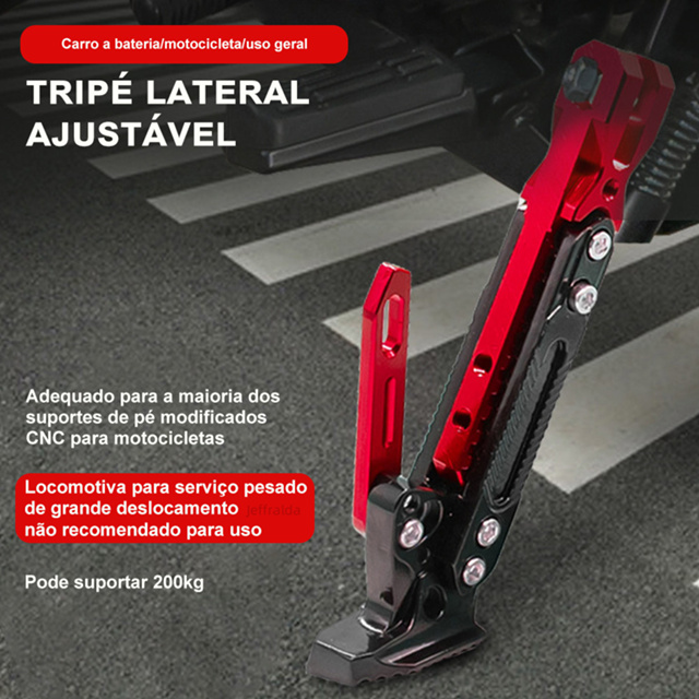 Descanso de Descanso para Pé Moto Cavalete Ajustável Universal Esportes com Mola Várias Cores Suporta PESO DE MOTOCICLETAS ATÉ 600 CILINDROS Ângulo De 45 ° Ajustável. Tamanho Ajustável: 19-26,5cm. Altamente pesado. Material: Liga de Alumínio Design antiderrapante, estável e durável. -Cinco Posições e ajuste de altura, conveniente de usar. -Fabricado Em liga de alumínio cnc, resistente ao desgaste, anti-corrosão. Mantém sua bicicleta angular corretamente para uma posição segura em pé - Mantém sua bicicleta angular corretamente para uma posição segura em pé. -Ajustável Kickstands permitirá que você encurte o kickstand quando você diminuir seus veículos e não precisar Preocupação em mudar seu estoque de chute Já VEM COM A MOLA Cores coloridas Preto Vermelho e vermelho Dados técnicos: Altura Máxima 25,5cm e Altura Mínima 18,5cm - Possui Regulagem de Altura (Altura Máxima 25,5cm e Altura Mínima 18,5cm) - O comprimento pode ser ajustado livremente de acordo com sua preferência Fácil instalação