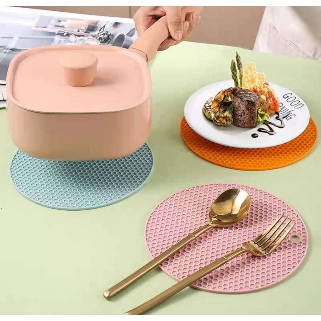 Para o seu dia a dia, o descanso de panela é durável e perfeito. Fabricado em silicone de altíssima qualidade, resistente a temperaturas de até 240°C. Proteja suas toalhas e mesa com o descanso de panela em silicone evitando que danifiquem ao entrar em contato direto com panelas quentes. O padrão de favo de mel diminui o peso, distribui uniformemente o calor para proteger melhor as mãos e fornecer isolamento, além de melhorar a aderência. serve como pegador de panela, descanso de colher, almofada quente ou pinça de tampa de frasco. OBS: NÃO RECOMENDADO PARA FOGÃO DE INDUÇÃO. TRABALHADO DOS DOIS LADOS Características: Comprimento:17.5 cm Altura: 0,8 mm Diâmetro: 17.5cm Limpeza: Você pode lavá-los em sua pia com uma esponja macia e detergente, compatível com a lava-louças. Até alimentos pegajosos e gordura saem da superfície antiaderente com facilidade. A vida útil é longa. Contém: 4/ 6unidades de descanso de panela