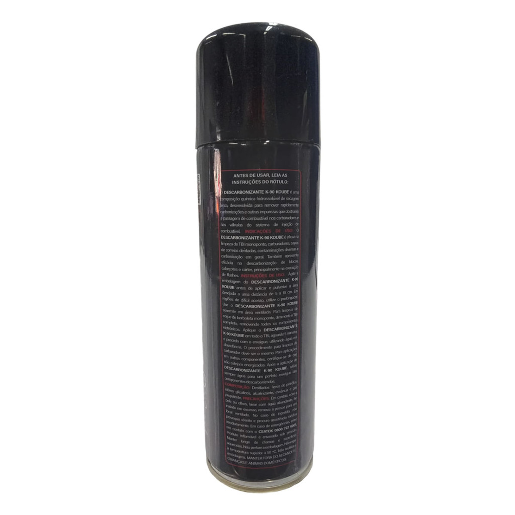 • Descarbonizante K90 Koube é uma Composição Química Hidrossolúve de Secagem Lenta • Desenvolvida para Remover Rapidamente Carbonizações e Outras Impurezas que Obstruem a Passagem de Combustível nos Carburadores e nas Válvulas do Sistema de Injeção de Combustível • Utilizado na Limpeza de TBI Monoponto, Carburadores, Capas de Correias Dentadas, Contaminações Diversas e Carbonização em Geral • Eficaz na Descarbonização de Blocos, Cabeçotes e Cárter, Principalmente na Execução de Flushes • Composição: Destilados de Petróleo Hidro Tratados Leves, Éteres Glicólicos, Aditivos Anticorrosivos e Gás Propelente • Contém: 300ml • Peso Líquido: 230g Obs: Pulverizar sob a peça a ser descarbonizada. Modo de Usar: • Agite bem a Embalagem Antes de Aplicar. • Pulverize a Área Desejada a Uma Distância de 5 a 10 cm, Utilize o Prolongador em Regiões de Díficil Acesso • Utilize este produto apenas em Áreas Ventiladas. • Para Limpeza de TBI Monoponto Desmonte-o Completamente, Removendo Todos os Componentes Eletrônicos. • Aplique o Produto em Toda Peça em Seguida Aguarde 5 Minutos e Proceda com o Enxágue, Utilizando Água em Abundância. • O procedimento deve ser o mesmo para limpeza de carburador. Conteúdo da Embalagem • 01 Descarbonizante Slow Drying