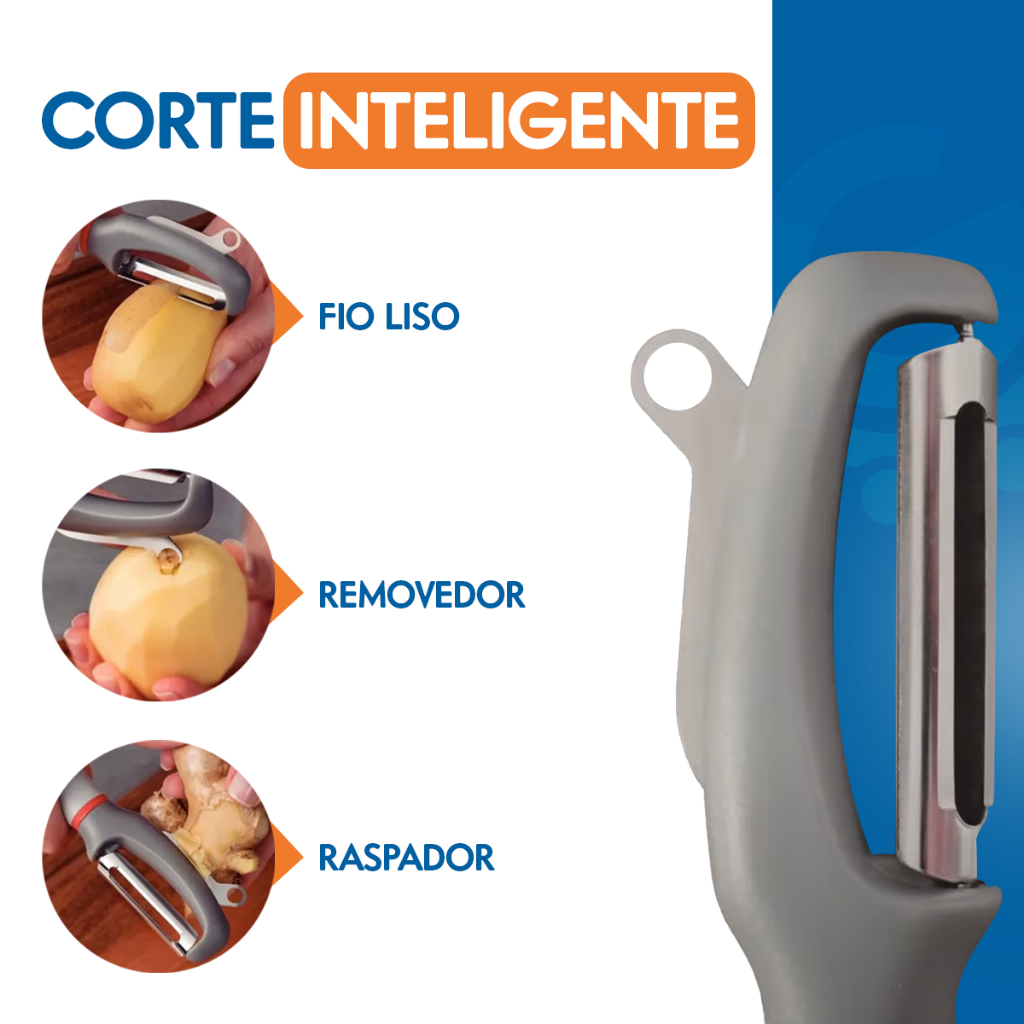 Descascador de Batatas Legumes Verduras Fruta Fio Liso Lamina Inox Tramontina Cabo Plástico Multiuso