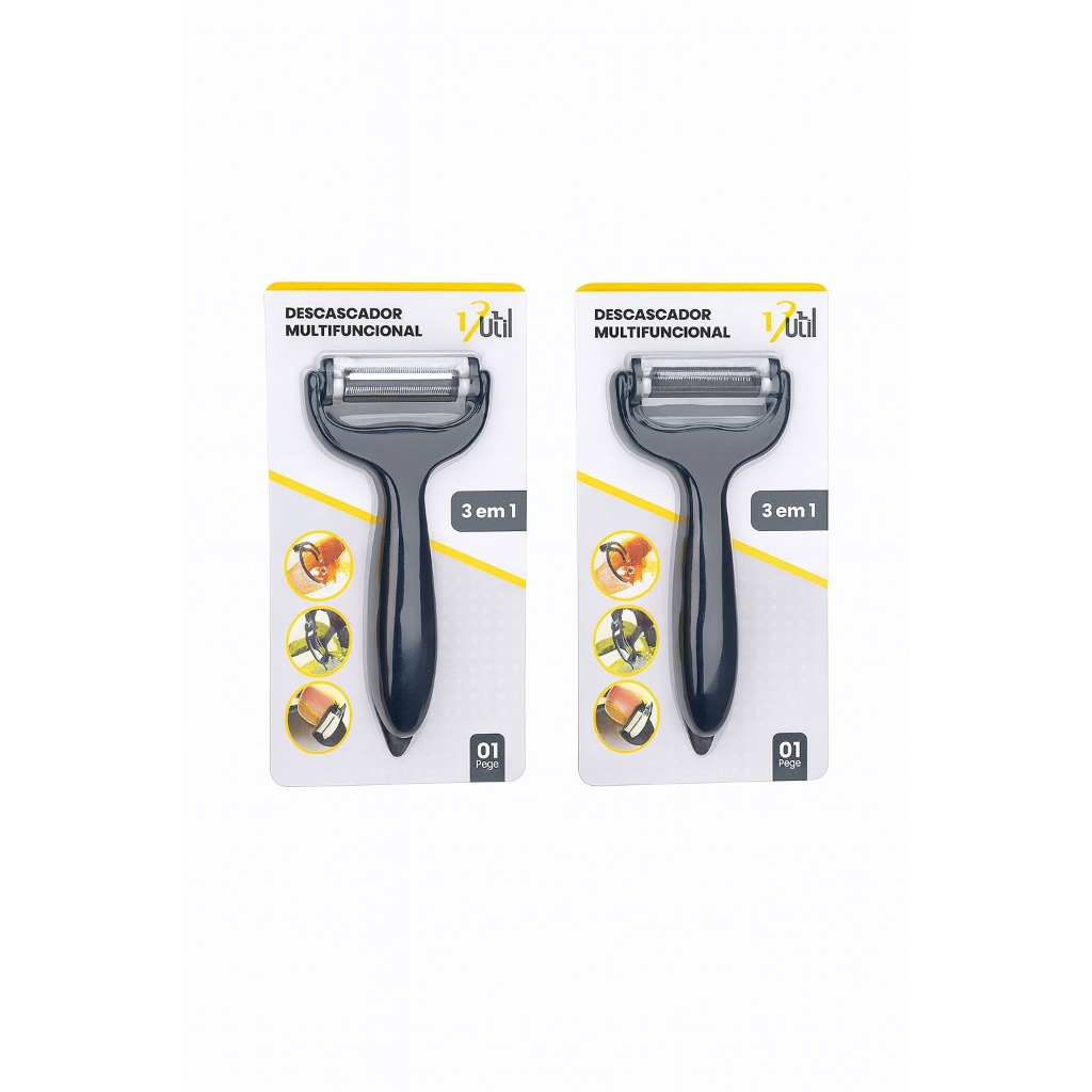 Descascador Multifuncional 3 em 1 Fatiador Prático De Legumes Frutas 3 Laminas Afiadas Aço Inox