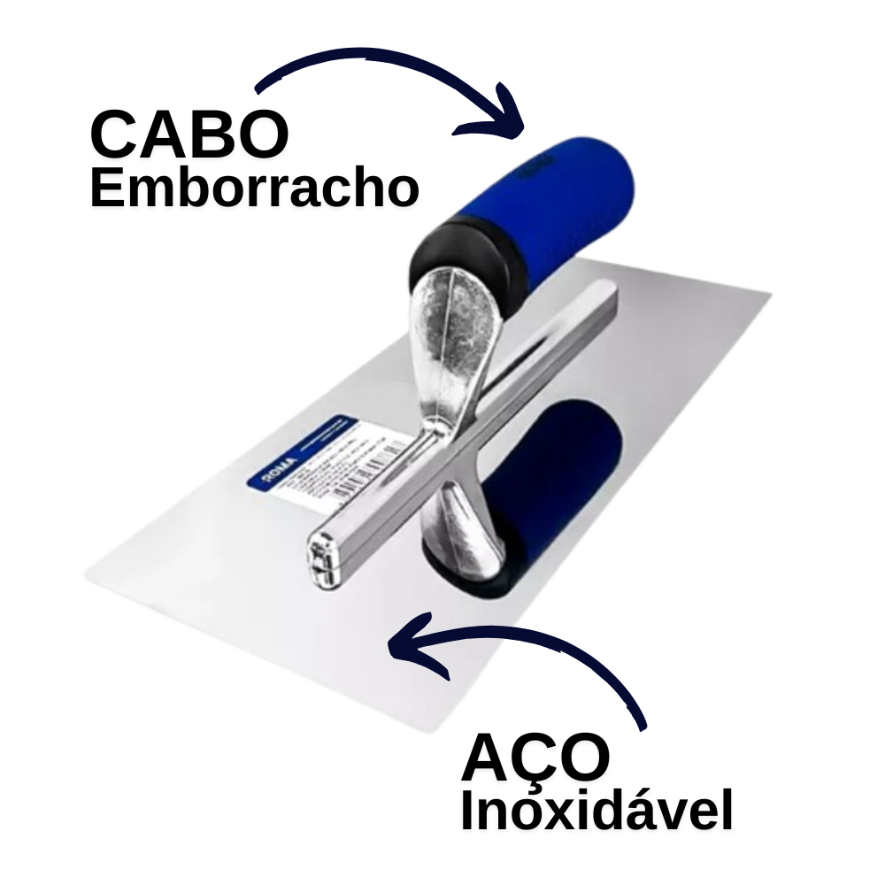 DESEMPENADEIRA ROMA DE ACO INOX PRO LISA 12X28CM Desempenadeira lisa 12x28cm. Cabo de plástico emborrachado e lâmina de aço inox. Indicadas para o preparo, nivelamento e revestimento de superfícies. Aplicação de argamassas, massas corridas e texturas. Resistente à oxidação. Para conservar a ferramenta logo após o uso, retirar os resíduos do produto utilizado e lavar em água corrente.