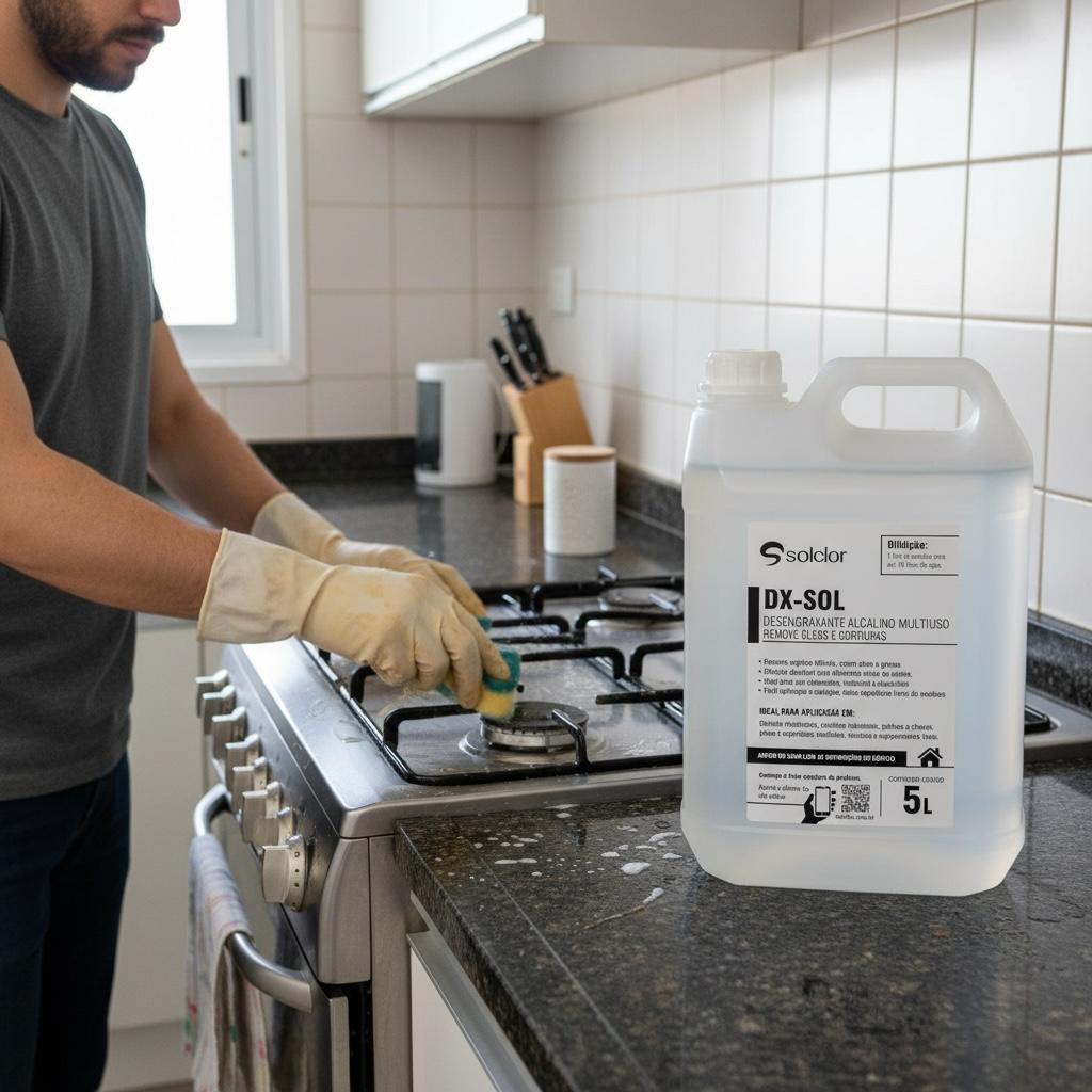🧼 Desengordurante Alcalino Incolor DX-Sol Solclor 5L – Remoção Eficiente de Óleo, Graxa e Gordura O Desengordurante Alcalino Incolor DX-Sol da Solclor é a solução ideal para quem precisa de limpeza eficiente, segura e prática no dia a dia. Projetado para remover óleo, graxa, gordura e sujeiras oleosas, ele entrega alto desempenho sem agredir superfícies sensíveis, graças à sua fórmula moderna, alcalina e totalmente incolor. Ideal para manutenção frequente, limpeza profissional e uso doméstico. 🔥 Principais Benefícios 🛢 Remove óleo, graxa e sujeiras oleosas com facilidade 🛡 Fórmula alcalina segura para uso diário ✨ Incolor: não mancha e não altera o acabamento 🧽 Versátil: funciona em diversas superfícies laváveis ⚙️ Ideal para manutenção preventiva em áreas com sujeira recorrente 💧 Pode ser usado puro ou diluído 🧴 Compatível com pano, esponja, pulverizador ou lavadora 🏭 Onde usar Perfeito para ambientes que exigem limpeza constante: ✔️ Coifas, fogões e chapas ✔️ Cozinhas industriais ✔️ Áreas externas e pisos ✔️ Bancadas e pias ✔️ Peças metálicas e ferramentas ✔️ Paredes e azulejos laváveis ✔️ Locais com sujeira leve a moderada de gordura 🔧 Modo de Uso 👉 Para sujeiras pesadas: 1 - Aplique puro com ajuda de pano, esponja ou borrifador 2 - Deixe agir por alguns minutos 3 - Esfregue e enxágue normalmente 👉 Para limpeza de manutenção: 1 - Dilua até 1:10 em água 2 - Aplique com pano, esponja ou pulverizador 3 - Esfregue e enxágue normalmente 4 - A diluição aumenta o rendimento e mantém a segurança no uso diário. ⭐ Por que escolher o Desengraxante DX-Sol da Solclor? Produto de alto rendimento Ação rápida na quebra da gordura Incolor: não deixa manchas Fórmula alcalina mais leve, segura e eficaz Fabricado pela Solclor, marca referência em limpeza pesada
