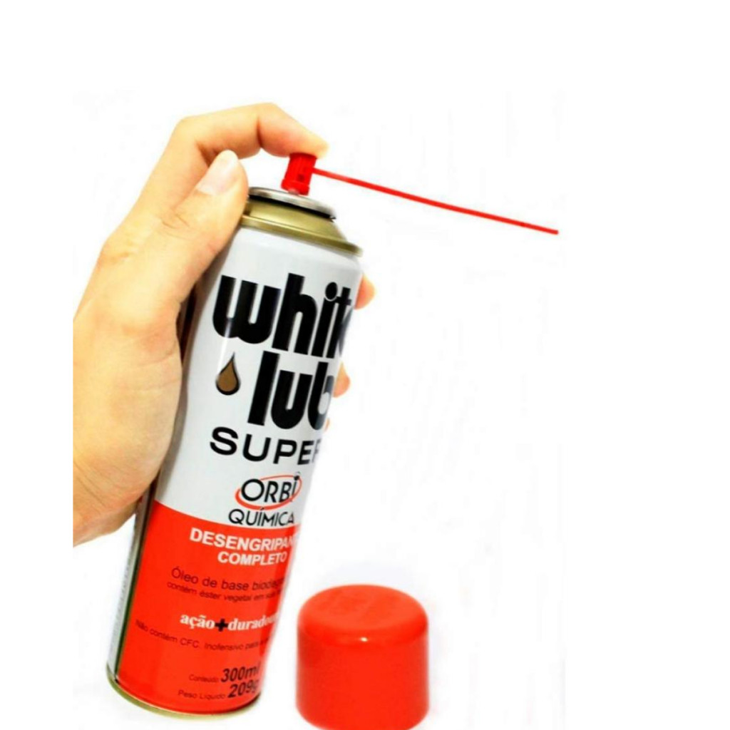 ____________________________ATENÇÃO___________________________ Antes de realizar a compra, certifique-se que os dados para faturamento da sua Nota Fiscal e do Endereço de Entrega, estejam corretos. Após a compra, esses dados não podem ser alterados pelo Vendedor. ____________________________DESCRIÇÃO_________________________ White Lub Super 300 ml 209g Orbi Química - KIT 3 UN Produto líder de mercado em seu segmento, possui uma formulação especial tendo como base o Éster de Óleo de Soja Degomado que lhe atribui propriedades únicas. Após a aplicação cria uma película protetora sobre as superfícies, protegendo contra ferrugem e oxidação. Seu poder de aderência cria uma barreira perfeita contra a umidade. A ação penetrante foi especialmente elaborada para o produto desengripar com muita facilidade porcas e parafusos, reduzindo tempo, esforço e custo nas manutenções de máquinas e equipamentos em geral. Desengripante com alto poder penetrante de rápida ação. Age como antioxidante eliminando a água da superfície. Forma um filme aderente, diminuindo o atrito e o desgaste entre as peças.