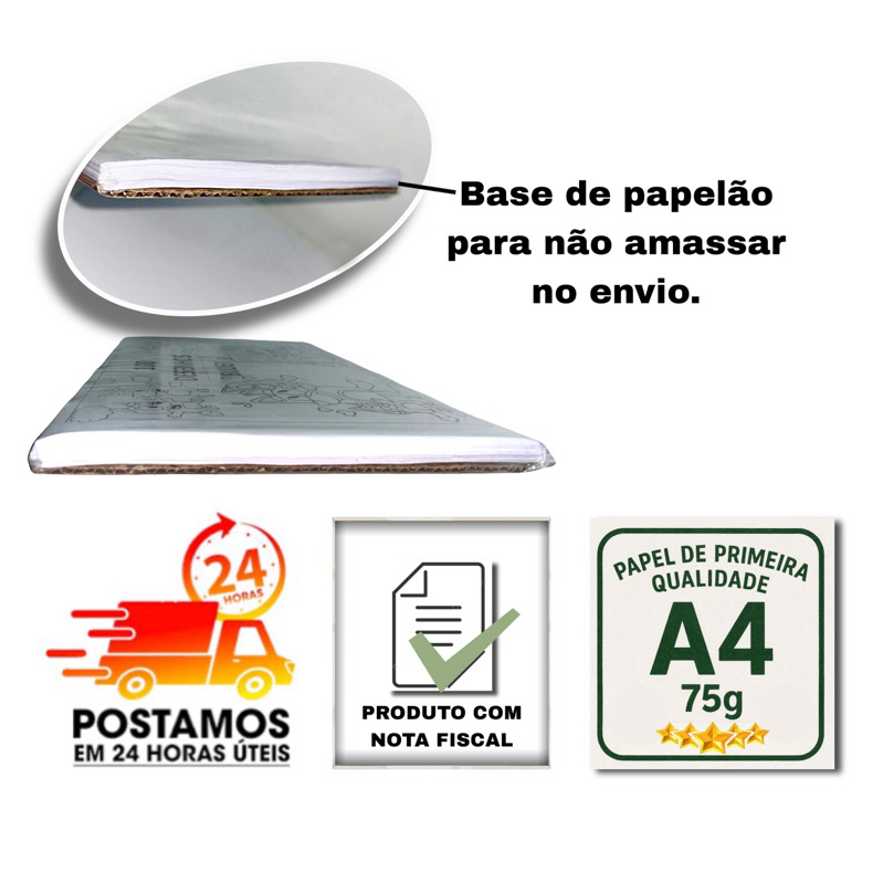 100, 200 ou 300 Desenhos Bíblicos para Colorir. Inspire fé, criatividade e aprendizado com este kit exclusivo de desenhos bíblicos para colorir! Ideal para crianças, líderes de ministério infantil e famílias cristãs que desejam ensinar valores de forma divertida e educativa. 🖍️ O que você vai receber: ✅ Desenhos Impressos em folhas A4 75g. Folhas soltas, facilitando o manuseio e o controle de uso. ✅ 2 DESENHOS POR FOLHA ✏️Na opção de 100 desenhos: 50 folhas com 2 desenhos por folha📄 Totalizando 100 desenhos. ✏️Na opção de 200 desenhos: 100 folhas com 2 desenhos por folha📄 Totalizando 200 desenhos. ✏️Na opção de 300 desenhos: 150 folhas com 2 desenhos por folha📄 Totalizando 300 desenhos. ✔ Desenhos com temas bíblicos (Jesus, Arca de Noé, Davi e Golias, e muito mais!) 📦Envio em 24h úteis, bem embalado. 🧒 Perfeito para: - Atividades na igreja, EBD, célula ou culto infantil; - Momentos de lazer em família; - Presentes educativos.