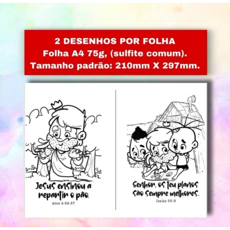 Desenhos Bíblicos para Colorir - Folhas soltas - 2 Desenhos por folha ✨ EBD