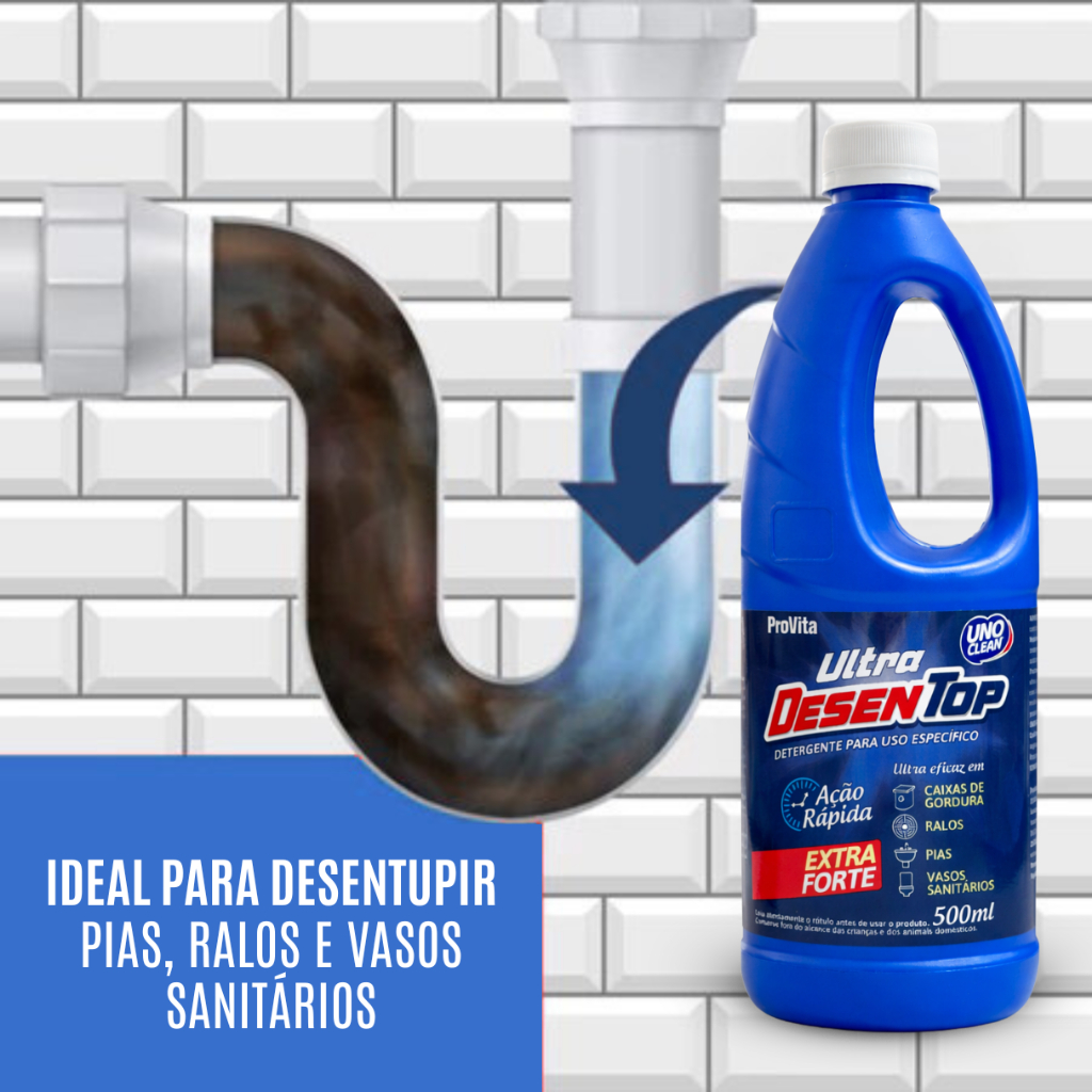 Desentupidor Líquido Ultra Desentop - Caixas de Gordura, Ralos, Pias, Vasos Sanitários, Limpa Fossa