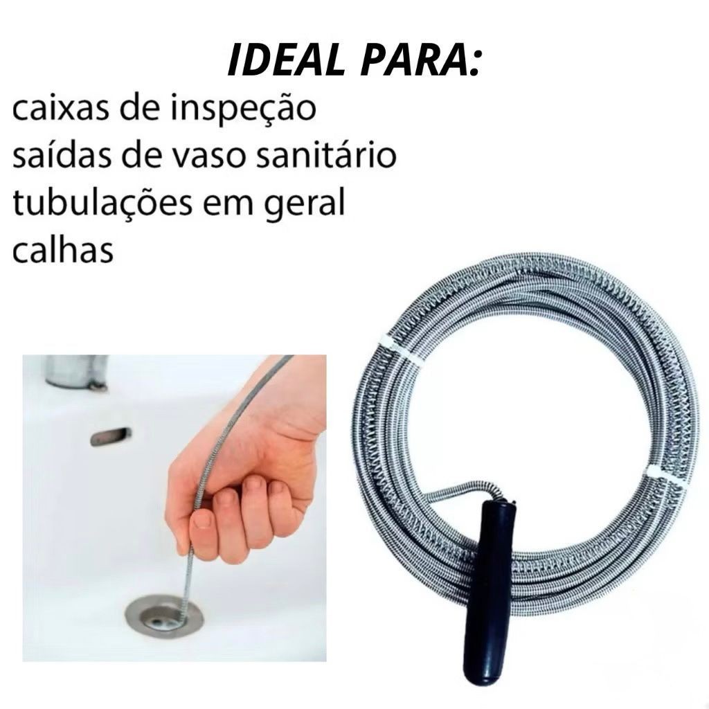 Desentupidor Manual 3m e 5m Mola de Aço Ralo Pia Banheiro Cozinha Quintal Cano Calha