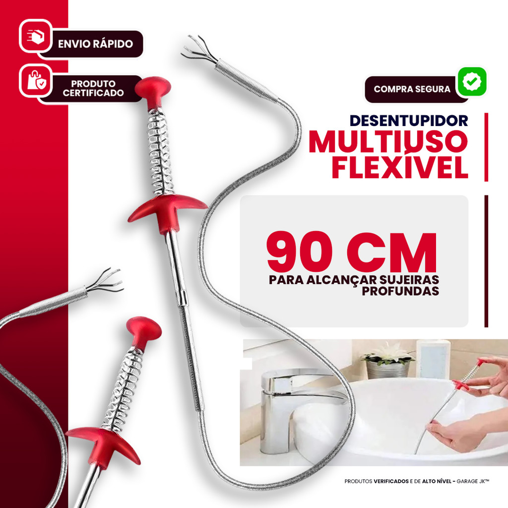 Desentupidor Manual Flexível 90cm tufão para Pia, Ralo, Vaso, Banheiro, Tubulação, Mola e Manivela