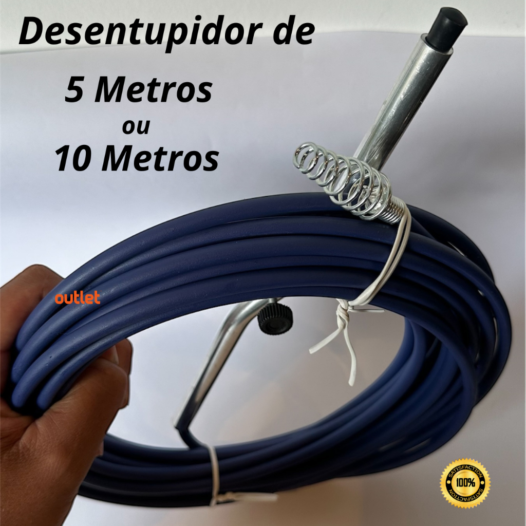 Acabe com os entupimentos sem gastar com encanador Desentupidor Manual com Cabo de Aço – Opções de 5m ou 10m Pare de sofrer com ralos e pias entupidas! Com este desentupidor manual de alta resistência, você mesmo resolve o problema de forma rápida, prática e sem sujeira – direto no ponto do entupimento, sem precisar de produtos químicos agressivos. ✅ Disponível em dois tamanhos: 5 metros ou 10 metros ✅ Ideal para pias, ralos, tanques e canos curtos ✅ Alta durabilidade e eficiência ✅ Uso doméstico prático e ecológico Como funciona? Fabricado com cabo de aço latonado revestido com termoplástico, este desentupidor é flexível, resistente à corrosão e fácil de manusear. A ponteira em mola de aço rompe e remove bloqueios com eficácia, deslizando pela tubulação ao girar a manivela embutida. Tudo isso sem precisar de energia elétrica ou ferramentas adicionais. Vantagens: ✔ Uso 100% manual e simples ✔ Sem necessidade de produtos químicos ✔ Fácil de limpar, reutilizar e guardar ✔ Ideal para resolver entupimentos em poucos minutos Especificações Técnicas: Comprimento: escolha entre 5 metros ou 10 metros Cabo: aço latonado com revestimento termoplástico Ponteira: mola de aço flexível Manivela integrada para giro manual Solução inteligente, prática e econômica. Tenha esse item essencial sempre à mão e diga adeus aos entupimentos inesperados!